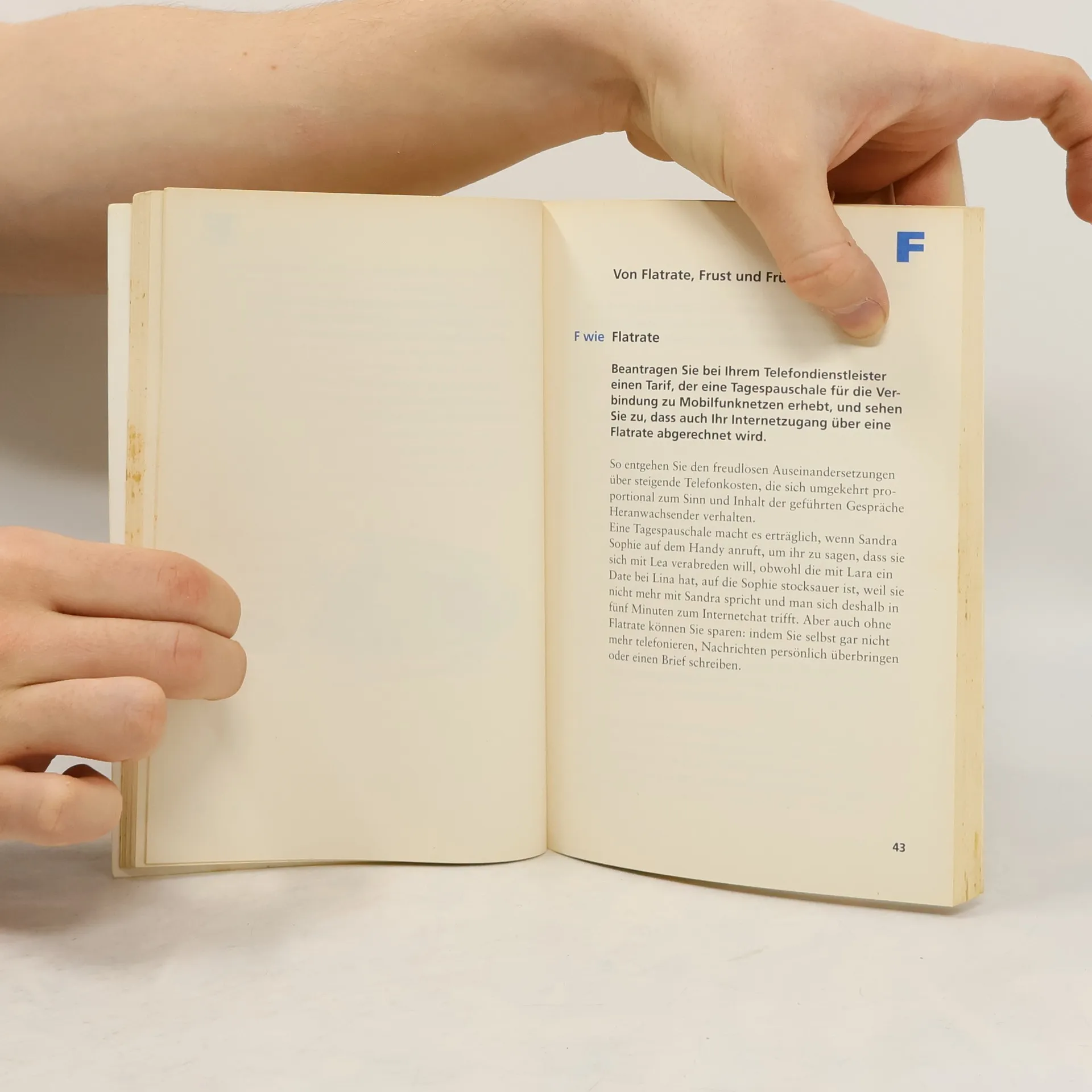 A wie Holen Sie Heranwachsende jederzeit und überall ab, wenn diese es wünschen. Lähmende Müdigkeit in der letzten Schulstunde? Anruf genügt, Sie sausen los. Lassen Sie alle Termine fallen oder auch das Baby auf dem Arm – denn Sie werden woanders gebraucht! Wenn Sie streng sein wollen, lassen Sie den Nachwuchs bis zur nächsten Kreuzung laufen, dass ist dann aber auch genug.F wie Funktionskleidung ... bedenken Sie, dass auch bei einer Winterjacke der Bauch ihrer Tochter frei bleiben MUSS. Passende Größen finden Sie theoretisch in der Kleinkindabteilung – allerdings gefallen da die Modelle nicht. Achten Sie darauf, nur in die angesagten Läden zu das sind die, wo das Personal nicht mit Ihnen spricht und bestenfalls eine Kaugummiblase für Sie platzen lässt.S wie Nehmen Sie dieses Wort vor allem in den Ferien niemals in den Mund. Reißen Sie sich zusammen, falls Ihnen das nächste S....-jahr Sorgen bereitet, weil die S....-noten unterirdisch waren und Sie deswegen auch schon einen Brief von der S....-leitung bekommen haben. Es ist schließlich nicht ihr Zeugnis, das den Bach runtergeht.