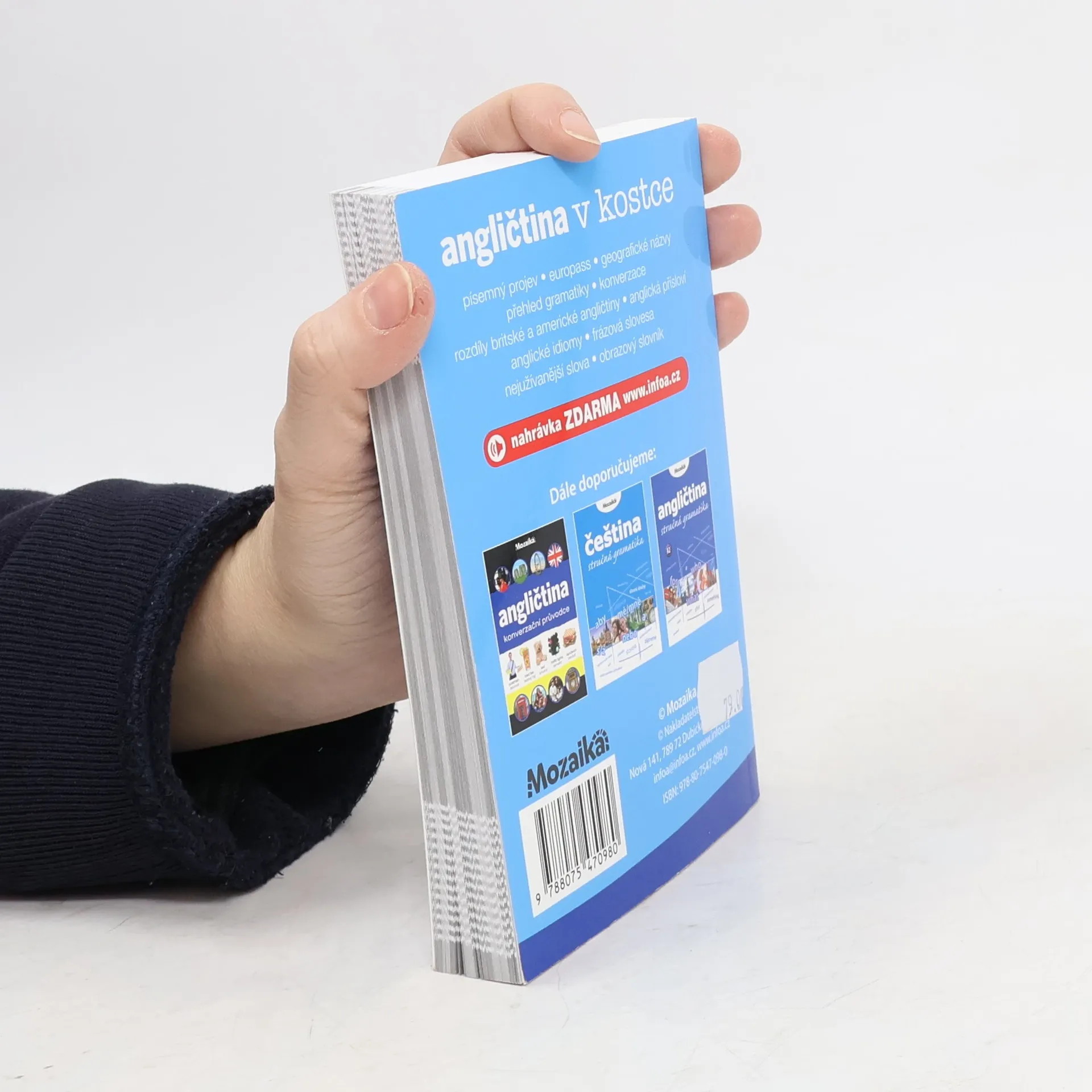 V brožované příručce naleznete písemný projev, přehled gramatiky, rozdíly britské a americké angličtiny, anglické idiomy, geografické názvy, konverzace, frázová slovesa, nejužívanější slova a obrázkový slovník.