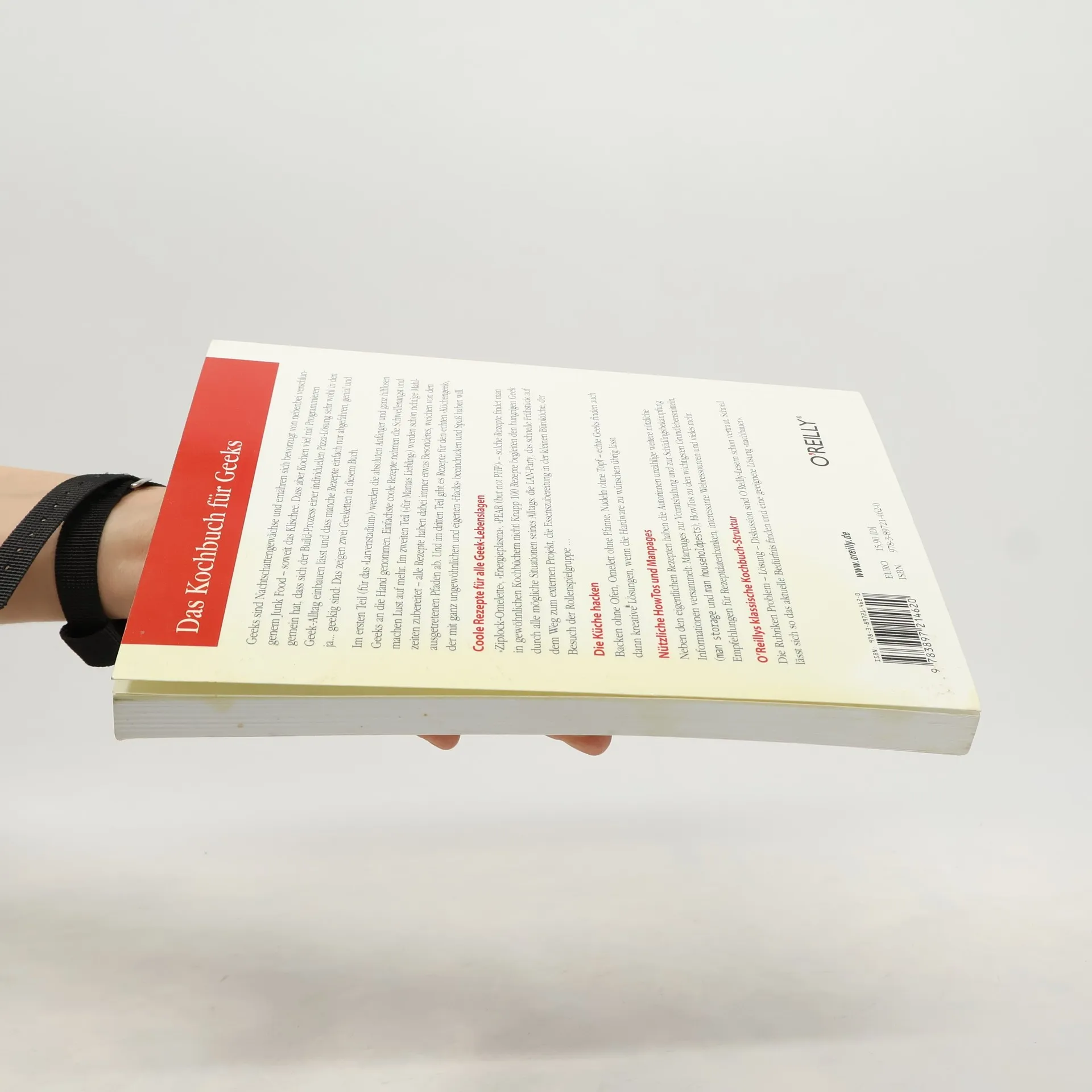 Nach landläufiger Meinung leben Geeks von Cola und TK-Pizza, die sie nachts am Rechner geistesabwesend in sich reinschlingen. Soweit das Klischee! Dass aber Kochen viel mit Programmieren zu tun hat, dass es nämlich ähnlich kreativ ist, dass viele Wege zum individuellen Ziel führen und dass manche Rezepte einfach nur abgefahren und - ja, geekig sind: Das zeigen zwei Köchinnen in diesem Buch. Das in der bewährten O'Reilly-Rezeptstruktur aus Problem, Lösung und Diskussion aufgebaute Kochbuch gliedert sich in drei Teile. Im ersten Teil (für das „Larvenstadium“) werden die absoluten Anfänger und ganz hilflosen Geeks an die Hand genommen. Einfachste coole Rezepte nehmen die Schwellenangst und machen Lust auf mehr. Im zweiten Teil („für Mamas Liebling“) werden schon richtige Mahlzeiten zubereitet - alle Rezepte haben dabei immer etwas Besonderes, weichen von den ausgetretenen Pfaden ab. Und im dritten Teil gibt es Rezepte für den echten „Küchengeek“, der mit ganz ungewöhnlichen und eigenen „Hacks“ beeindrucken und Spaß haben will. Die Rezepte werden von coolen Tipps zu Nahrungsmitteln, Küchengeräten und Rezeptdatenbanken flankiert.