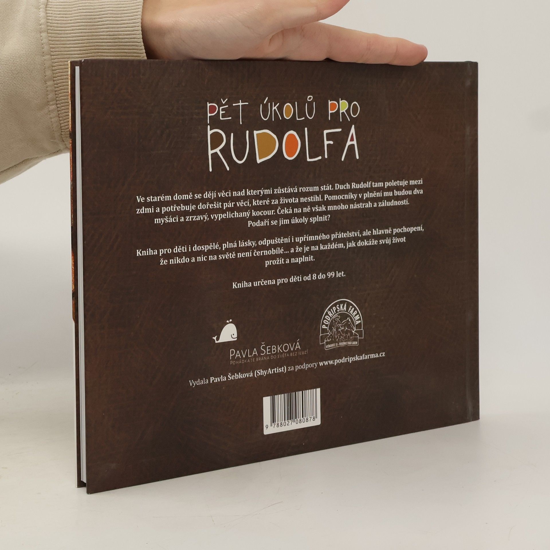 Ve starém domě se dějí věci nad kterými zůstává rozum stát. Duch Rudolf tam poletuje mezi zdmi a potřebuje dořešit pár věcí, které za života nestihl. Pomocníky v plnění mu budou dva myšáci a zrzavý, vypelichaný kocour. Čeká na ně však mnoho nástrah a záludností. Podaří se jim úkoly splnit? Kniha pro děti i dospělé, plná lásky, odpuštění i upřímného přátelství, ale hlavně pochopení, že nikdo a nic na světě není černobílé... a že je na každém, jak dokáže svůj život prožít a naplnit.