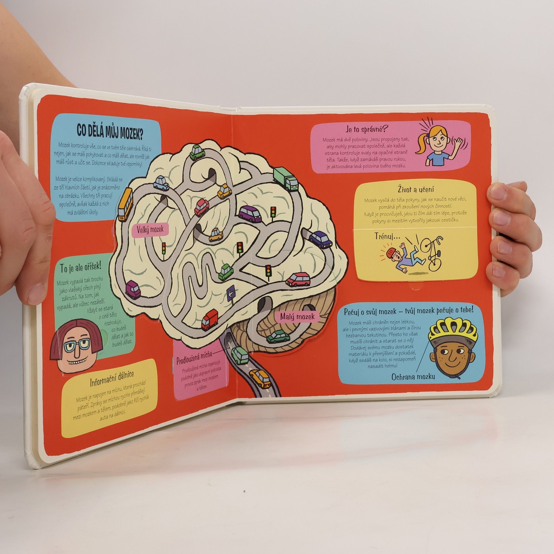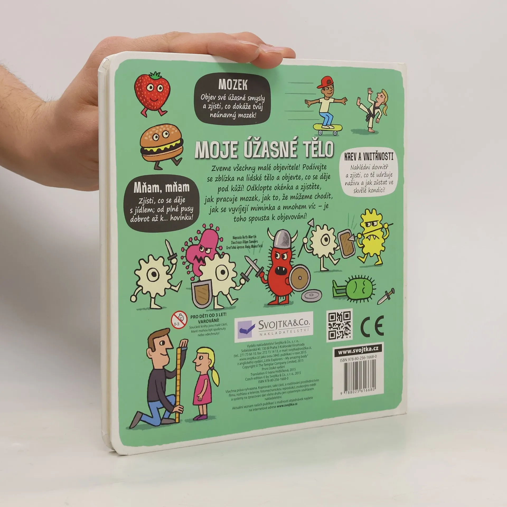 Zveme všechny malé průzkumníky k objevování - otevřete více než 50 okének a prohlédněte si lidské tělo ze všech stran! Je toho spousta k objevování! Nohy, ruce, kostra, nos, oči, srdce, plíce, žaludek… Zveme všechny malé průzkumníky k objevování! Podívejte se zblízka do lidského těla a zjistěte, co se děje pod kůží! Otevřete více než 50 okének a nahlédněte dovnitř, abyste viděli, co lidské tělo udržuje na živu a v dobré kondici. Zjistěte, co se děje s jídlem v trávicím traktu – od plné pusy dobrot až k… hovínku! Objevte úžasné smysly a poznejte, co dokáže neúnavný mozek! Zjistěte, jak je možné, že můžeme chodit, jak se v maminčině bříšku vyvíjí miminko a mnohem, mnohem víc – je toho přece spousta k objevování!