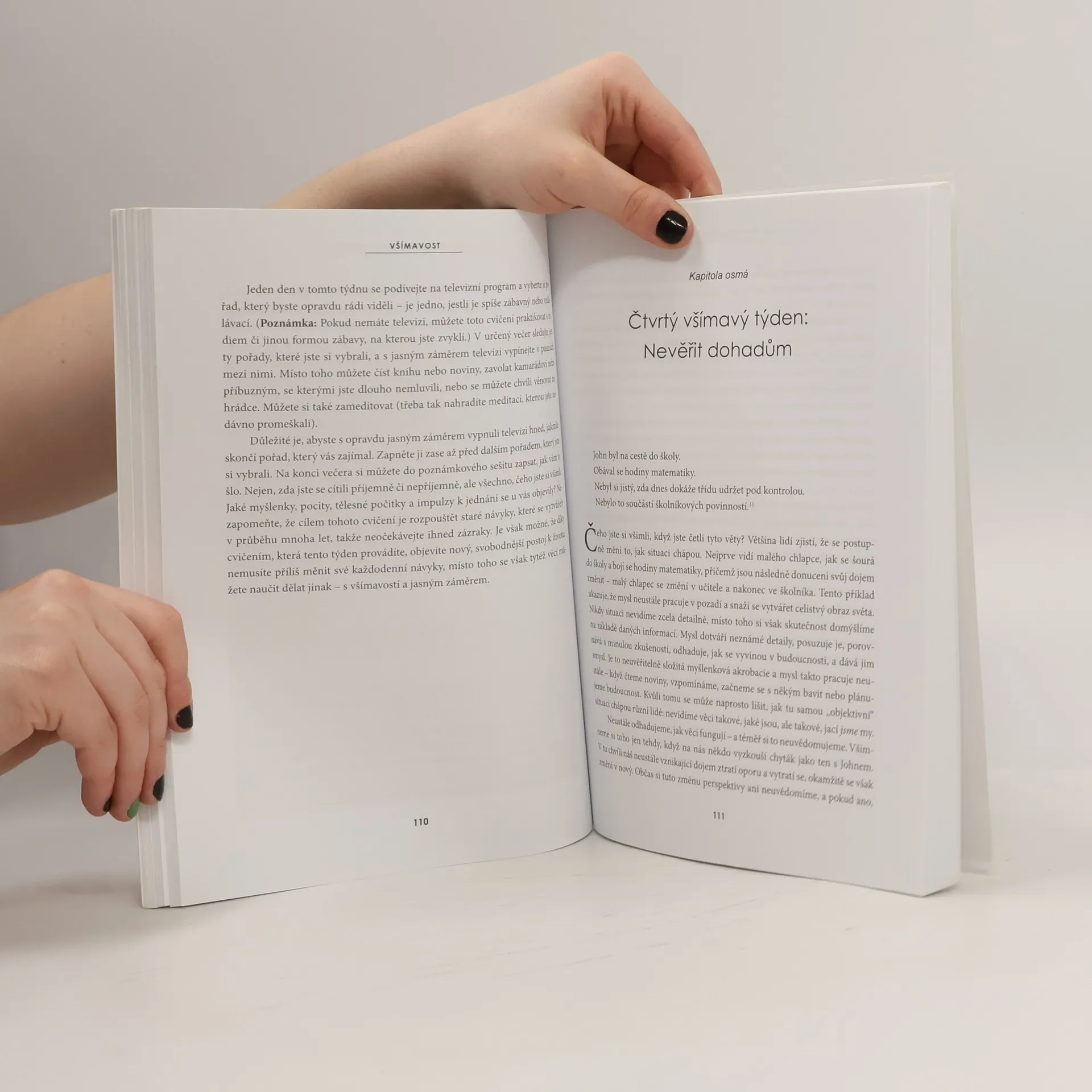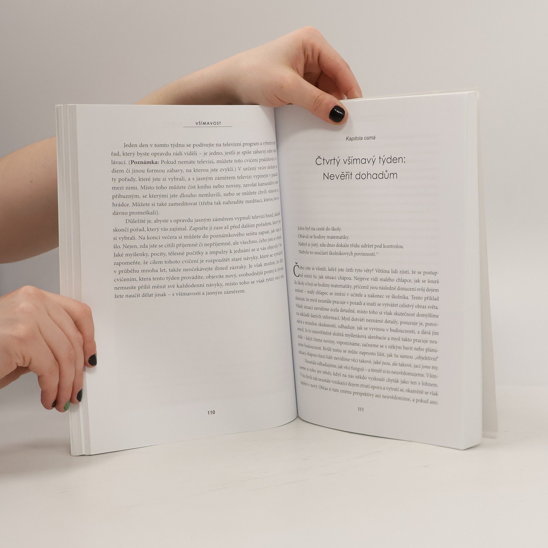 Kniha odhaluje řadu jednoduchých, ale účinných postupů, které mohou být začleněny do každodenního života a mohou pomoci prolomit kruh neštěstí, stresu, úzkosti a psychického vyčerpání a podpořit skutečnou radost ze života. Kognitivní terapie všímavosti (MBCT) Kniha je založena na kognitivní terapii všímavosti (MBCT), což je jednoduchá forma meditace všímavosti, která zabere jen pár minut denně. Je klinicky prokázáno, že MBCT je přinejmenším stejně tak účinná jako léky na depresi a funguje i u lidí, kteří nejsou v depresi, ale snaží se držet krok s neustálými požadavky moderního světa. Zapomeňte na stres a vstupte do světa míru, vyrovnanosti a štěstí Všímavost pomáhá zvýšit každému z nás míru jeho štěstí a důvěry, zároveň však také snižuje úzkost, stres a podrážděnost.