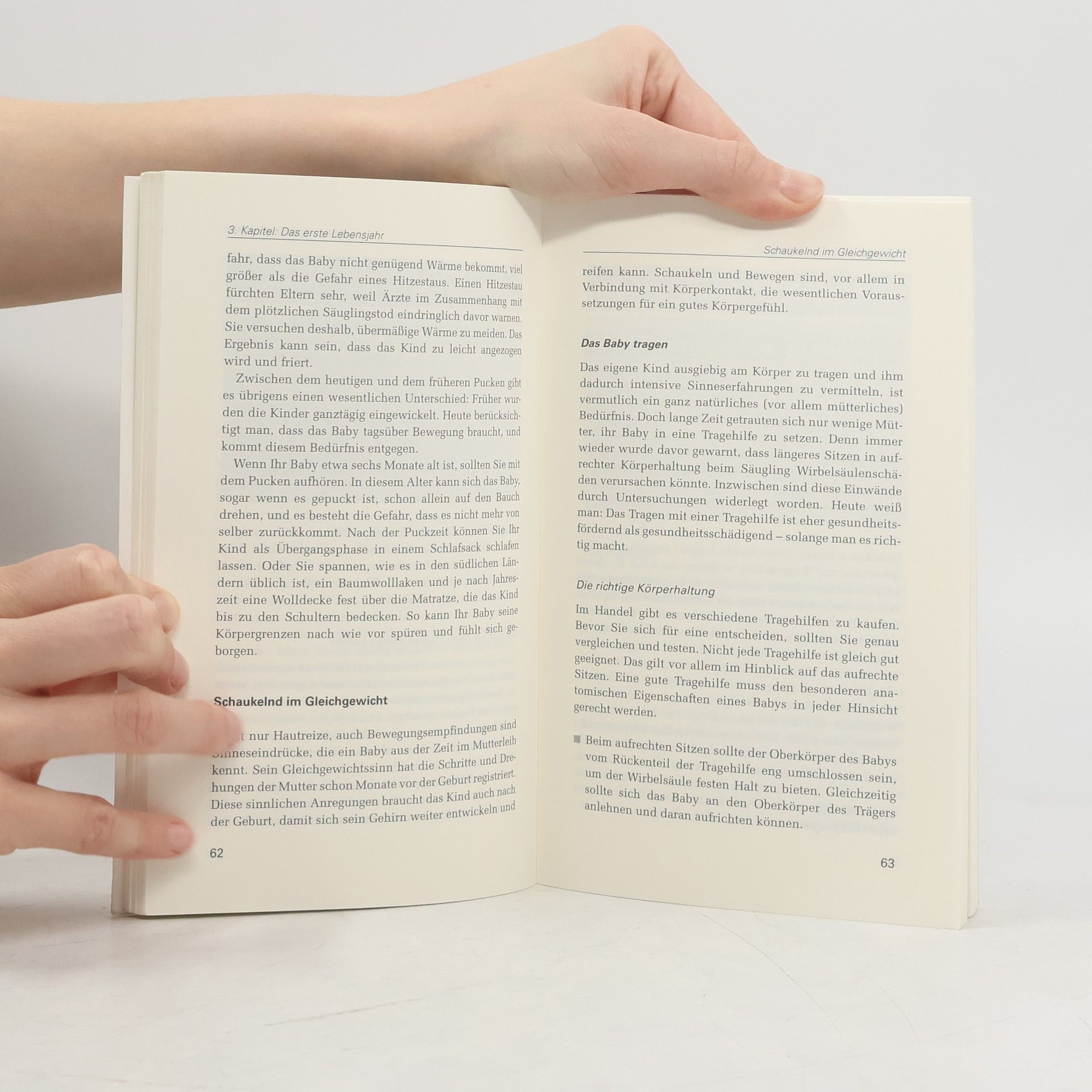 Für die gesunde Entwicklung des Kindes spielt die Körperwahrnehmung eine bedeutende Rolle. Tasten, fühlen, den eigenen Körper erfahren, sich koordiniert bewegen: Das sind wichtige Voraussetzungen, damit ein Kind sein körperliches, aber auch seelisches Gleichgewicht findet und mit Selbstvertrauen in die Welt hineinwächst. Eltern können eine Menge dazu beitragen. Ihrem Baby vermitteln sie durch zärtlichen Hautkontakt und Schaukelbewegungen wohlige Körperempfindungen und das Gefühl der Geborgenheit. Sie brauchen dabei keine Sorge zu haben, dass sie ihr Kind verwöhnen. Später, wenn das Kind laufen gelernt hat, können sie ihm helfen, sein Körpergeschick weiter zu entwickeln - zum Beispiel, indem sie es aktiv und bewusst in alltägliche Tätigkeiten einbeziehen. Wenn sie ihrem Kind viel Bewegungsfreiheit gönnen, lernt es, seine Körperfähigkeiten ausgiebig zu erproben. Dieses Buch bietet nicht nur praktische Anregungen für den Alltag, sondern auch eine reichhaltige Sammlung an Fühl- und Bewegungsspielen für kleine Kinder von 0 bis 3 Jahren.