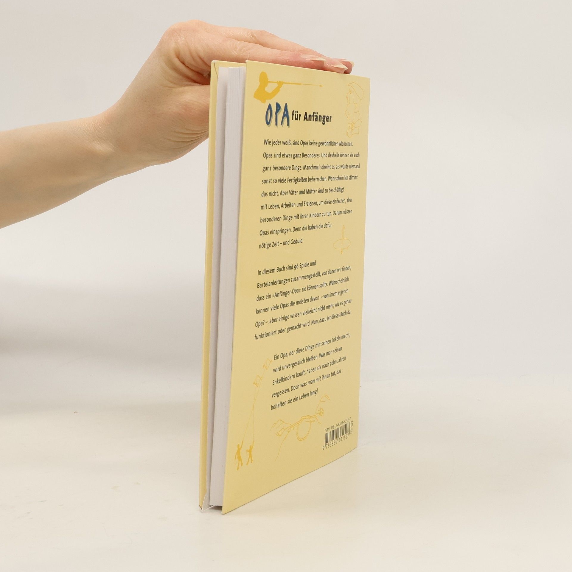 Wie jeder weiß, sind Opas etwas ganz Besonderes. Und deshalb können sie auch ganz besondere Dinge. Manchmal scheint es, als würde niemand sonst so viele Fertigkeiten beherrschen. Wahrscheinlich stimmt das nicht. Deshalb gibt es „Opa für Anfänger“. In diesem Buch sind 96 Spiele und Bastelanleitungen zusammengestellt, die ein „Anfänger-Opa“ können sollte, damit er für seine Enkel ein „richtiger“ Opa wird.