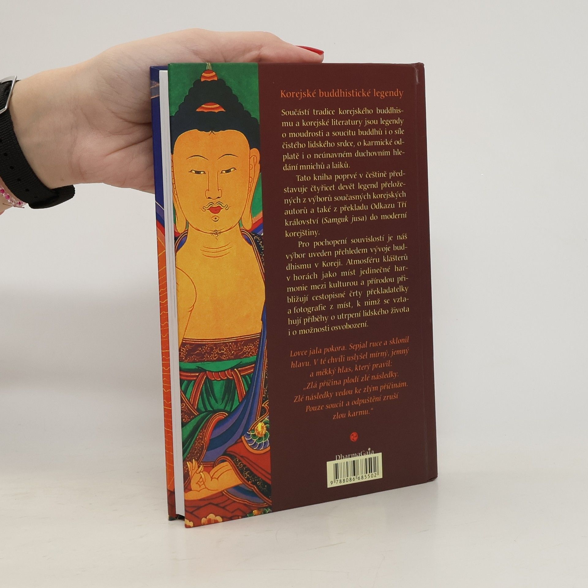 Součástí tradice korejského buddhismu a korejské literatury jsou legendy o moudrosti a soucitu buddhů i o síle čistého lidského srdce, o karmické odplatě i o neúnavném duchovním hledání mnichů a laiků. Tato kniha poprvé v češtině představuje čtyřicet devět legend přeložených z výborů součaných korejských autorů a také z překladu Odkazu Tří království (Samguk jusda) do moderní korejštiny. Pro pochopení souvislostí je náš výbor uveden přehledem vývoje buddhismu v Koreji. Atmosféru klášterů v horách jako míst jedinečné harmonie mezi kulturou a přírodou přibližují cestopisné črty překladatelky a fotografie z míst, k nimž se vztahují příběhy o utrpení lidského života i o možnosti osvobození.... celý text
