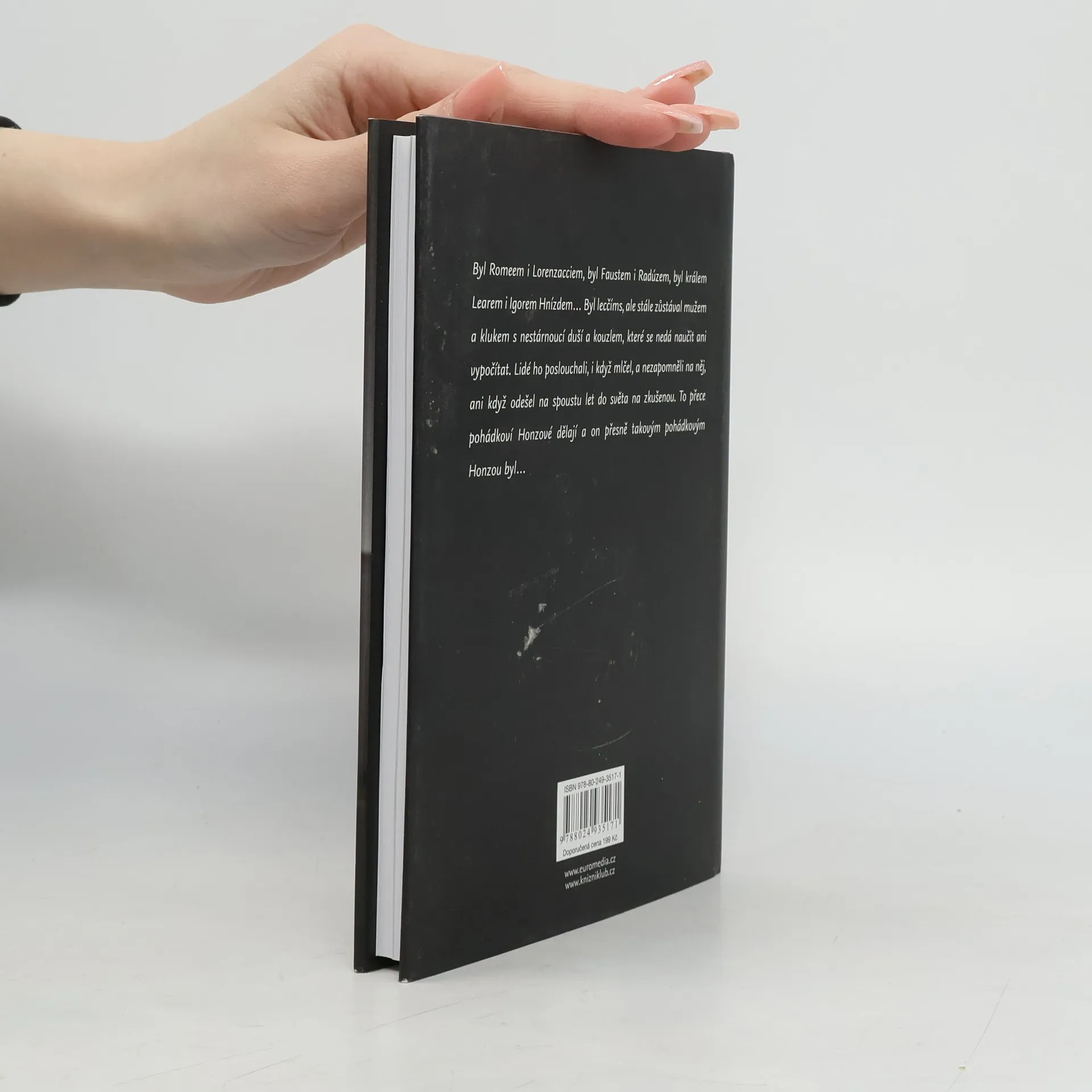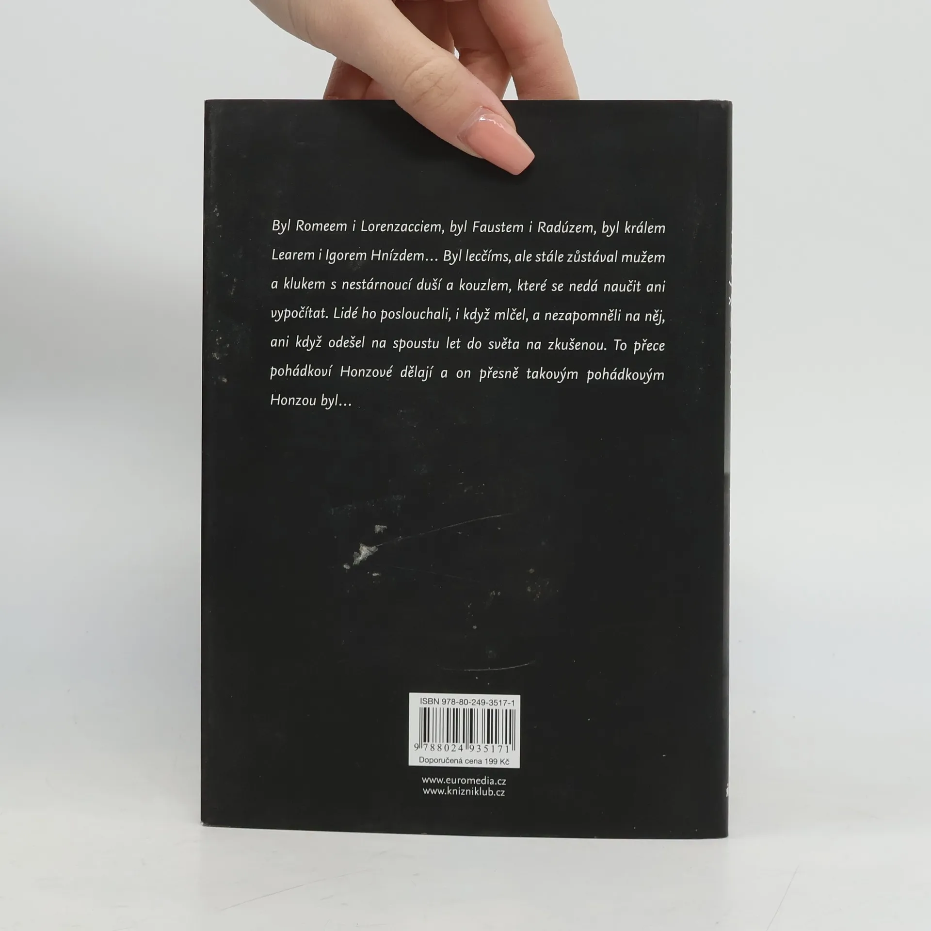 Byl Romeem i Lorenzacciem, byl Faustem i Radúzem, byl králem Learem i Igorem Hnízdem. Byl lecčíms, ale stále zůstával mužem a klukem s nestárnoucí duší a kouzlem, které se nedá naučit ani vypočítat. Lidé ho poslouchali, i když mlčel, a nezapomněli na něj, ani když odešel na spoustu let do světa na zkušenou. Ale to pohádkoví Honzové dělají a on přesně takovým pohádkovým Honzou byl… Biografie z pera Marie Formáčkové přibližuje životní peripetie renomovaného umělce, který vystudoval pražskou DAMU, stal se nejmladším členem činohry Národního divadla a uznávaným filmovým hercem. Životní i uměleckou dráhu mu však zkomplikovala složitá doba.