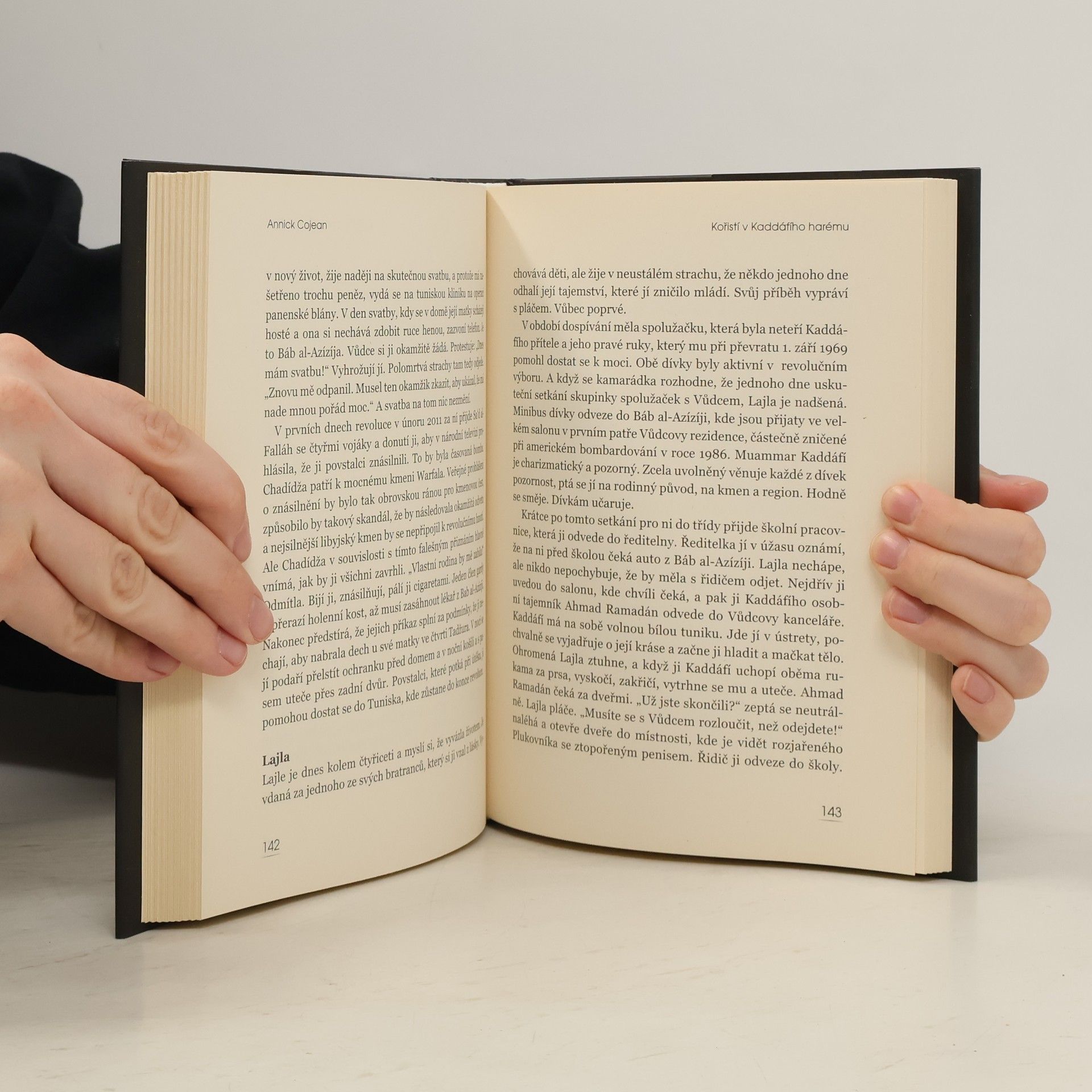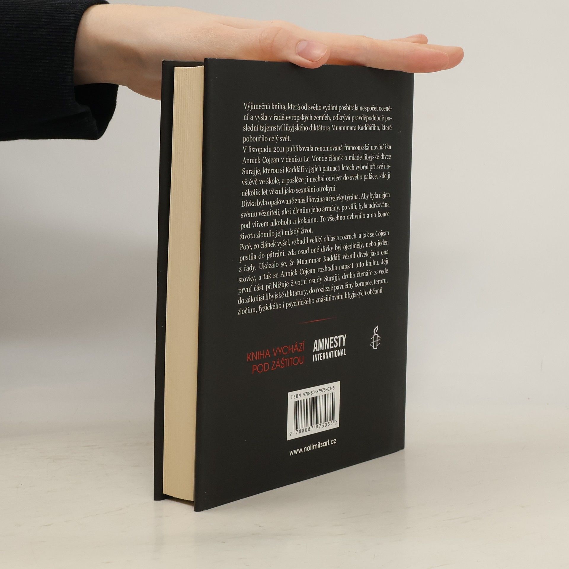 Výjimečná kniha odkrývá pravděpodobně poslední tajemství libyjského diktátora Muammara Kaddáfího, které pobouřilo celý svět. V listopadu 2011 publikovala francouzská novinářka Annick Cojean článek o libyjské dívce Surajje, kterou si Kaddáfí v jejích patnácti letech vybral při své návštěvě ve škole a nechal odvléct do svého paláce, kde ji několik let věznil jako sexuální otrokyni. Ukázalo se, že Kaddáfí věznil dívek jako ona stovky, a tak se Annick Cojean rozhodla napsat tuto knihu. Její první část přibližuje životní osudy Surajji, druhá zavádí čtenáře do zákulisí libyjské diktatury, do pavučiny korupce, teroru, zločinu, fyzického i psychického znásilňování libyjských občanů.