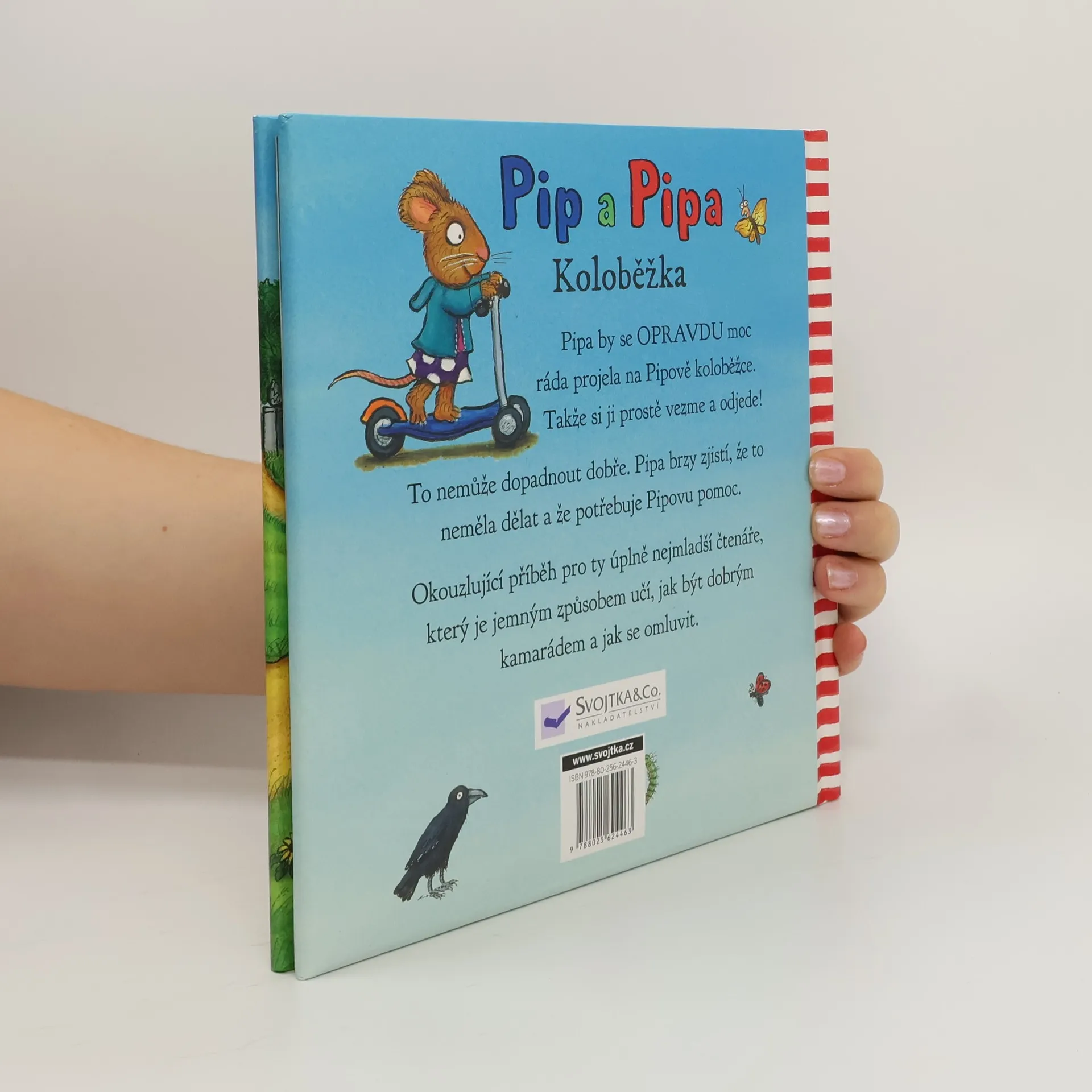 Pipa by se OPRAVDU moc ráda projela na Pipově koloběžce. Takže si ji prostě vezme a odjede! To nemůže dopadnout dobře. Pipa brzy zjistí, že to neměla dělat a že potřebuje Pipovu pomoc. Okouzlující příběh pro ty úplně nejmladší čtenáře oživil svými obrázky Axel Scheffler, známý ilustrátor Gruffala. Kniha děti jemným způsobem učí, jak být dobrým kamarádem a jak se omluvit.