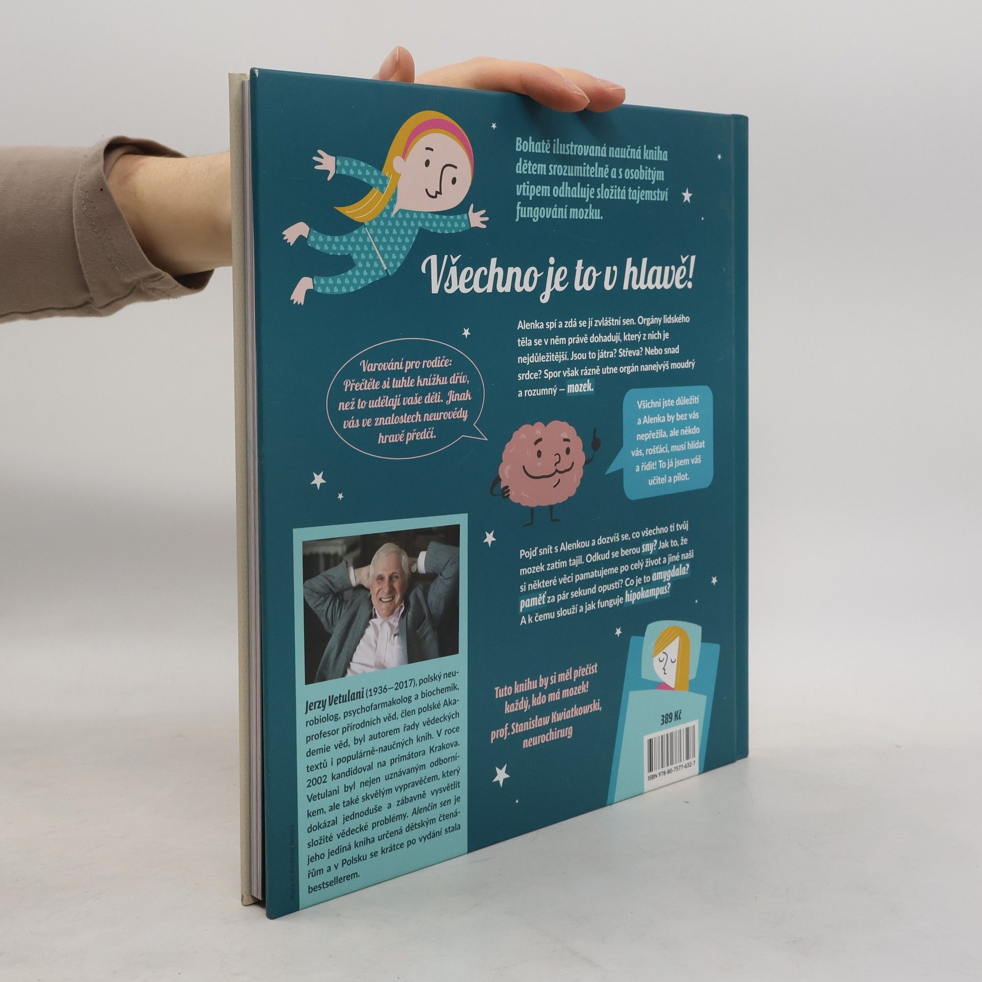 Když Alenka spí, probouzejí se neurony. Popravdě řečeno, ony nikdy nespí, nanejvýš si někdy potřebují trochu odpočinout. Dnes v noci připravil mozek Alence neobyčejný sen, ve kterém jí bude vyprávět o tom, jak řídí celé tělo. Pojď snít s Alenkou a objevíš tolik úžasných věcí, až se ti bude tajit dech. Zábavná, bohatě ilustrovaná naučná kniha odhaluje dětem tajemství fungování mozku. Přináší spoustu informací, a přesto čtenáře nezahltí. Je názorná, srozumitelně a neobyčejně poutavě napsaná. A navíc je vtipná, takže ji děti (a rozhodně nejen ony!) budou číst jako napínavý dobrodružný příběh. Autor knihy Jerzy Vetulani byl nejen světově uznávaným odborníkem, ale také skvělým vypravěčem, který dokázal jednoduše a zábavně vysvětlit složité vědecké problémy. Alenčin sen je jeho jediná kniha určená dětským čtenářům. Pro děti od šesti let.