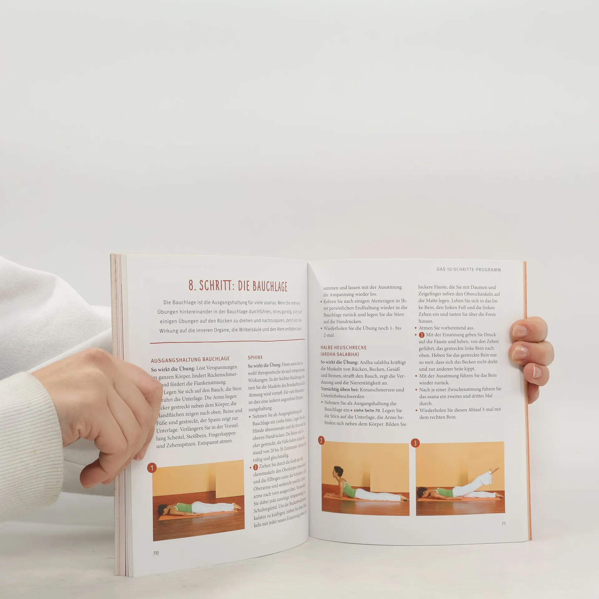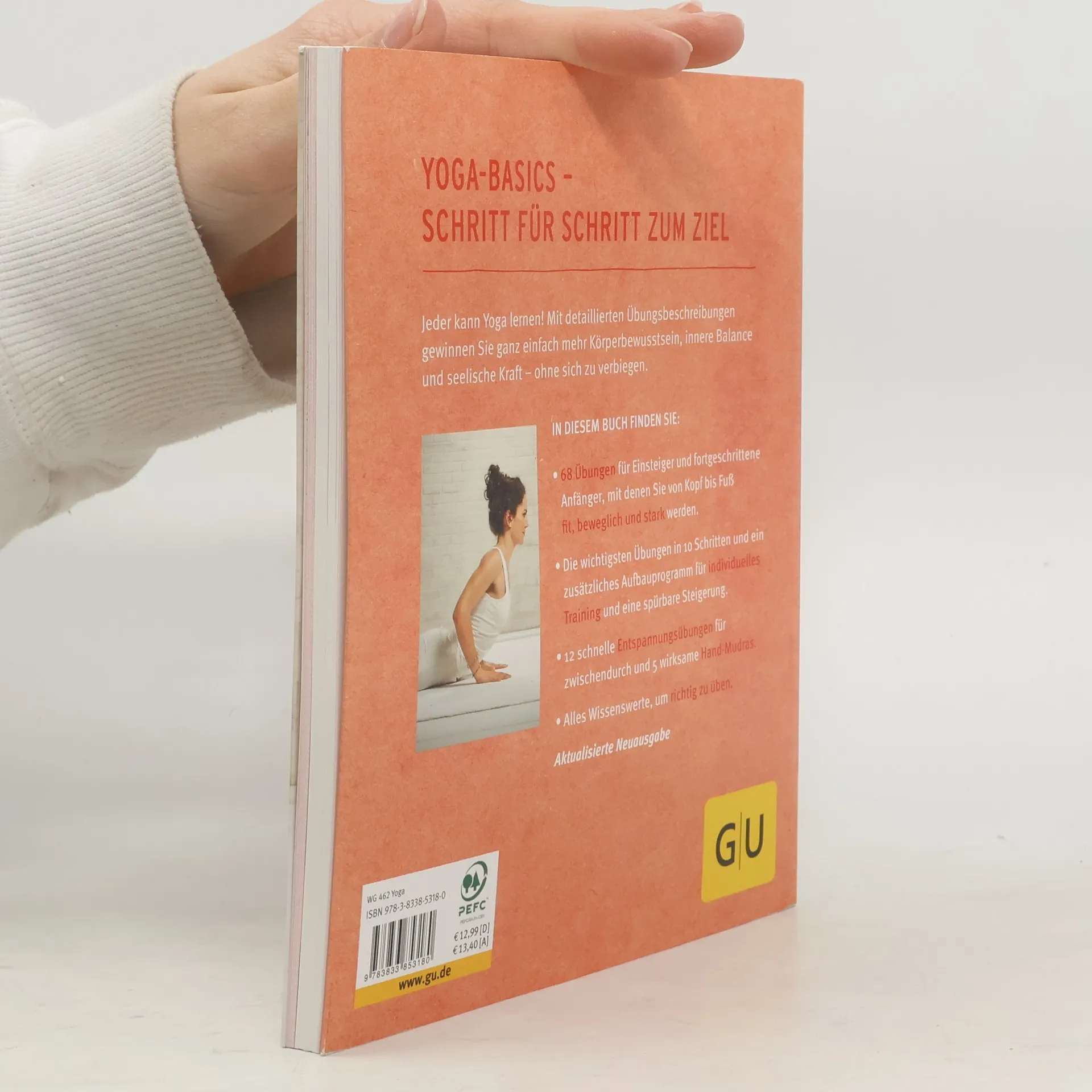 Das didaktisch ausgefeilte Übungsprogramm speziell für Anfänger Der Ratgeber bietet Wissenswertes über Yoga und die schnell erfahrbaren Wirkungen auf Körper, Geist und Seele. Das Buch ermöglicht Einsteigerinnen, Yoga richtig zu erlernen und begleitet sie Schritt für Schritt durch die Übungen. Grundlage für alle Yoga-Übungen ist die richtige Atmung, danach folgen genaue Anleitungen für jede einzelne Übung. Übungsfotos mit detaillierten Beschreibungen ermöglichen jedem Anfänger einen leichten Start und lassen keine Fragen offen. Bei jeder Übung wird die spezielle Wirkung erklärt, aber auch wann eine Übung besser nicht gemacht werden sollte. Tipps zum Zusammenstellen seines eigenen individuellen Übungsprogramms runden dieses Kapitel ab. Das letzte Kapitel hält für fortgeschrittene Anfänger noch ein paar alternative Haltungen und Atemübungen parat.
