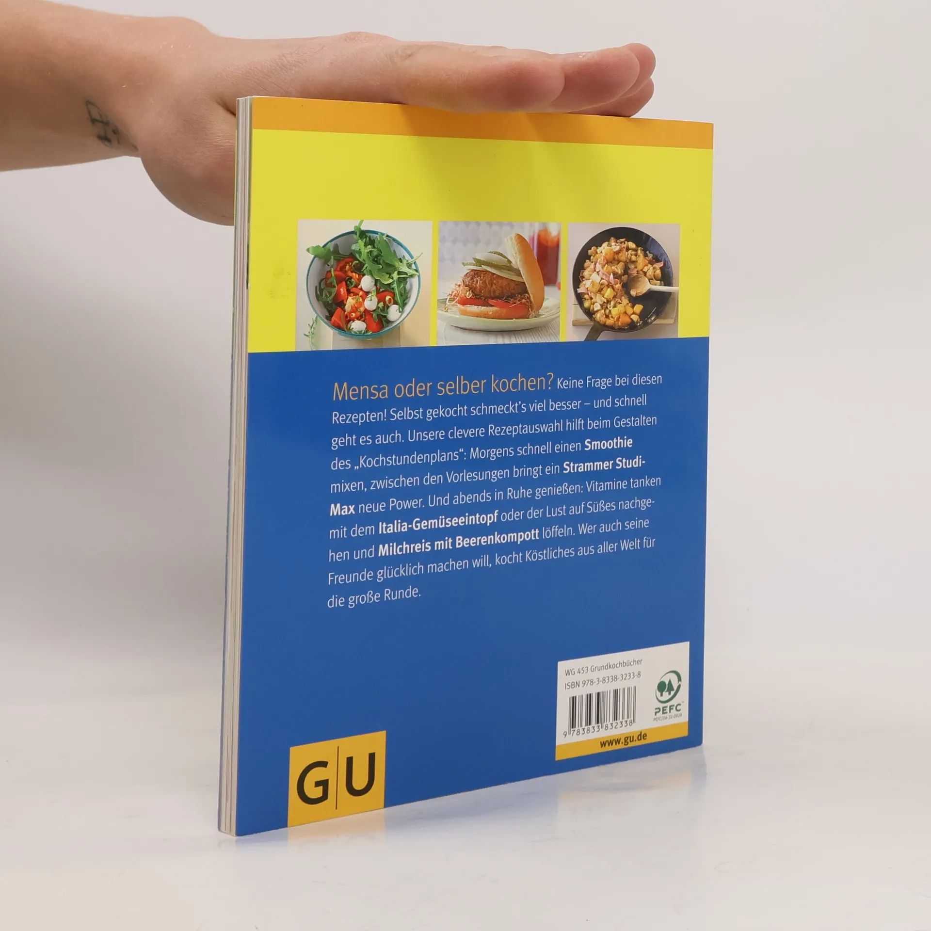 Die ultimativen Rezepte für alle Lebenslagen jenseits von Mensa und Cafeteria! Unkompliziert, schnell und preiswert sind sie in jeder noch so kleinen Studentenküche umsetzbar. Also einfach ausprobieren: Das lockeres Käserührei mit Kräutern, exotischer Fisch in Bananen-Currysauce oder der himmlischen Milchreis mit Fruchtkompott - alles gelingt ganz einfach. Zum gemütlichen Abend mit Freunden verlocken tolle Rezepte für Viele die in keinem Repertoire fehlen dürfen: Vom feurigen Chili con Carne über das verführerische Schoko-Orangen-Tiramisu - Studentenfutter vom Feinsten! Doch das ist noch nicht alles: Die köstlichen Rezepte sind nicht nur gesund sondern auch absolut bafögtauglich. Drei Rezepte für Brainpower-Frühstücke machen fit und sorgen für einen perfekten Start in den Morgen.