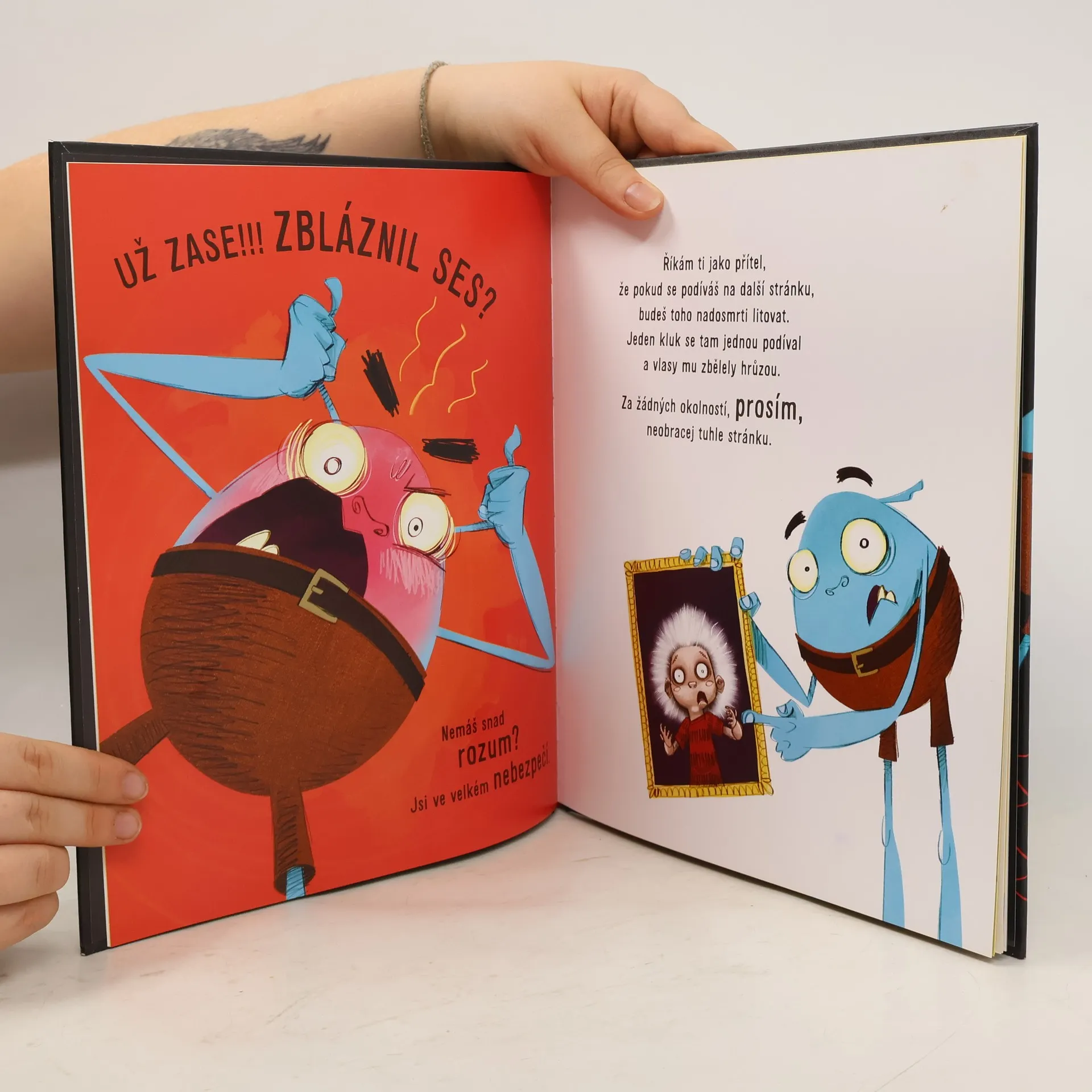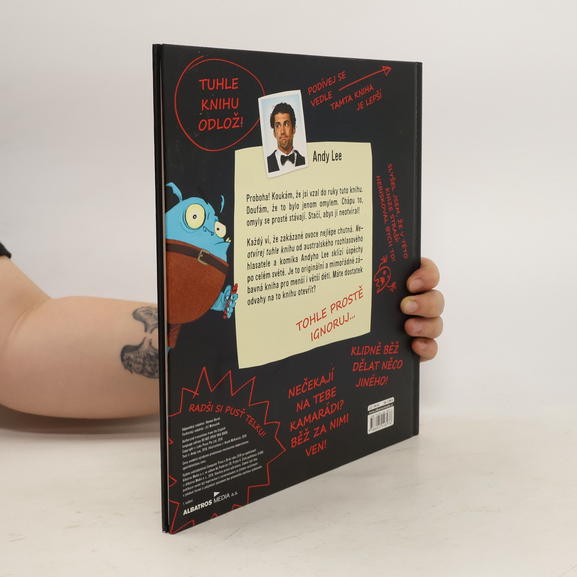 Proboha! Koukám, že jsi vzal do ruky tuto knihu. Doufám, že to bylo jenom omylem. Chápu to, omyly se prostě stávají. Stačí, abys ji neotvíral! A co se stane, když ji náhodou otevřeš? Každý ví, že zakázané ovoce nejlépe chutná. Neotvírej tuhle knihu od australského rozhlasového hlasatele a komika Andyho Lee sklízí úspěchy po celém světě. Je to originální a mimořádně zábavná kniha pro menší i větší děti. Máte dostatek odvahy na to knihu otevřít?