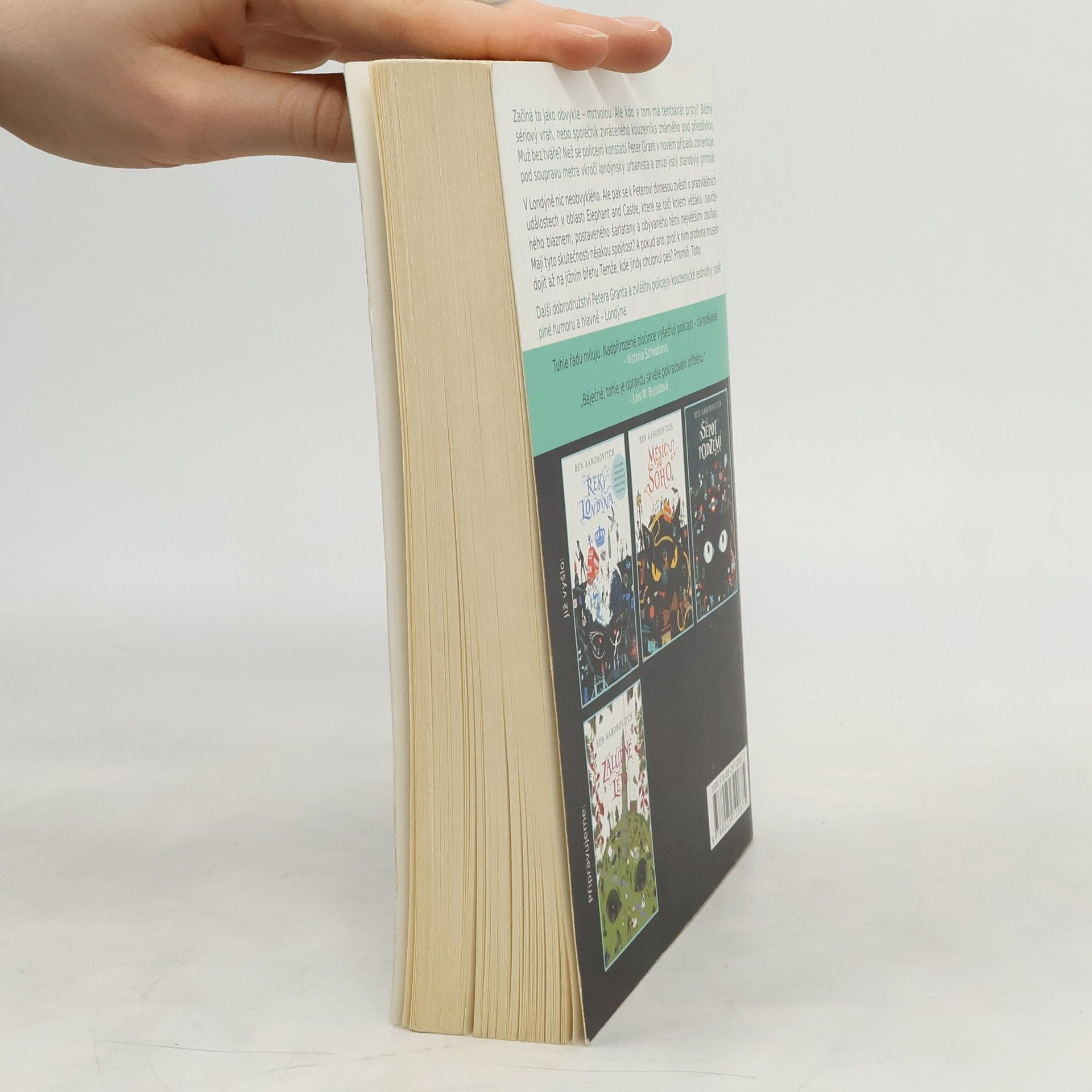 Začíná to jako obvykle – mrtvolou. Ale kdo v tom má tentokrát prsty? Běžný sériový vrah, nebo společník zvráceného kouzelníka známého pod přezdívkou Muž bez tváře? Než se policejní konstábl Peter Grant v novém případu zorientuje, pod soupravu metra vkročí londýnský urbanista a zmizí jistý starobylý grimoár. V Londýně nic neobvyklého. Ale pak se k Peterovi donesou zvěsti o prazvláštních událostech v oblasti Elephant and Castle točících se kolem věžáku navrženého bláznem, postaveného šarlatány a obývaného těmi největšími zoufalci. Mají tyto skutečnosti nějakou spojitost? A pokud ano, proč k nim proboha muselo dojít až na jižním břehu Temže, kde jindy chcípnul pes? Promiň Toby.