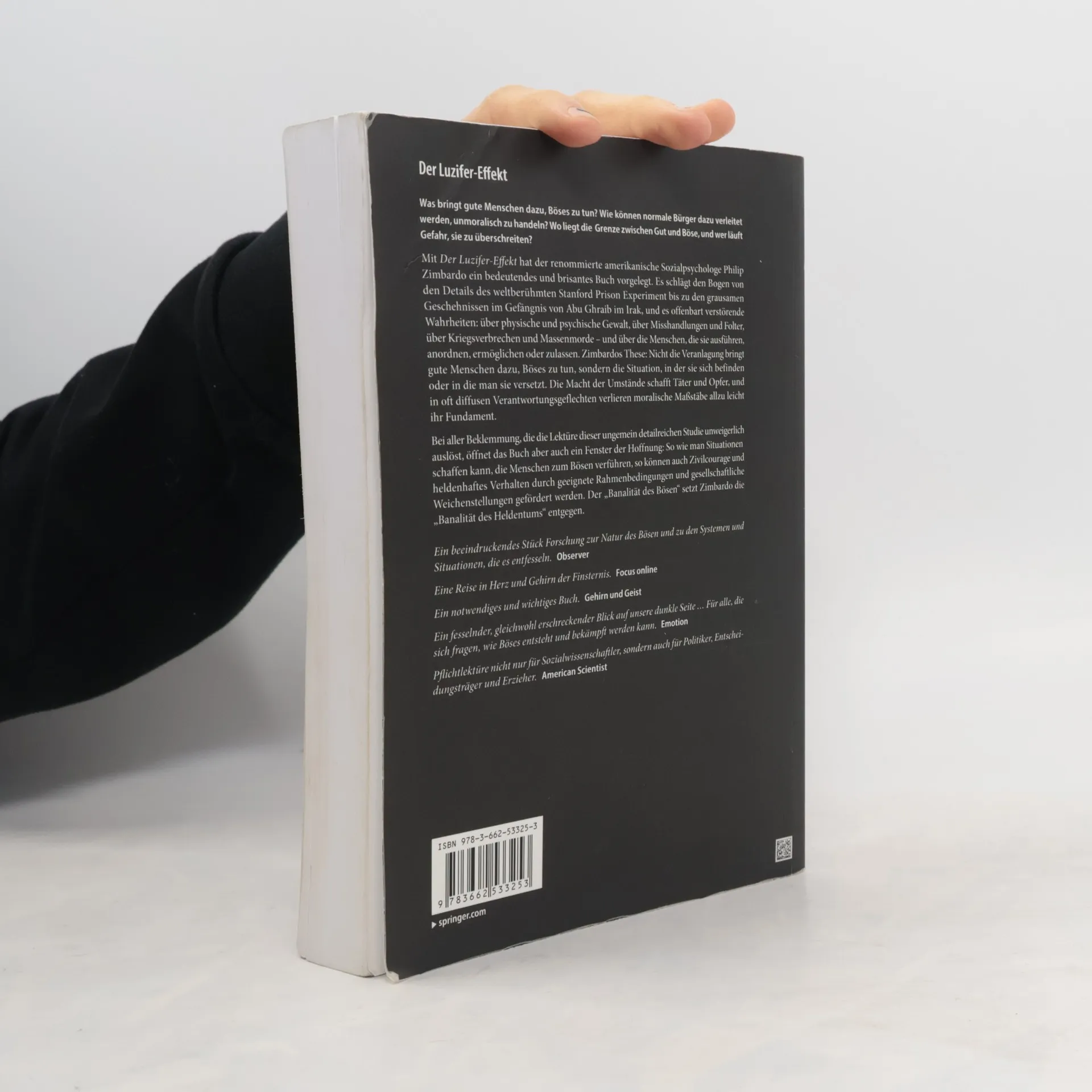 Was bringt gute Menschen dazu, Böses zu tun? Wie können normale Bürger unmoralisch handeln? Wo verläuft die Grenze zwischen Gut und Böse? Philip Zimbardo, renommierter Sozialpsychologe, untersucht diese Fragen in seinem bedeutenden Werk. Er verbindet die Erkenntnisse des Stanford Prison Experiments mit den grausamen Ereignissen im Gefängnis von Abu Ghraib und deckt verstörende Wahrheiten über physische und psychische Gewalt, Misshandlungen, Folter, Kriegsverbrechen und Massenmorde auf. Zimbardo argumentiert, dass nicht die Veranlagung, sondern die Situation, in der sich Menschen befinden, sie zu Tätern macht. Die Macht der Umstände kann moralische Maßstäbe untergraben und Täter sowie Opfer hervorbringen. Trotz der Beklemmung, die die Lektüre auslöst, bietet das Buch auch Hoffnung: So wie Situationen Menschen zum Bösen verleiten können, können auch Zivilcourage und heldenhaftes Verhalten gefördert werden. Zimbardo stellt der „Banalität des Bösen“ die „Banalität des Heldentums“ gegenüber. Diese Studie ist ein eindrucksvolles Stück Forschung zur Natur des Bösen und den Systemen, die es entfesseln. Sie ist Pflichtlektüre für Sozialwissenschaftler, Politiker, Entscheidungsträger und Erzieher, die sich mit der Entstehung und Bekämpfung von Bösem auseinandersetzen.
