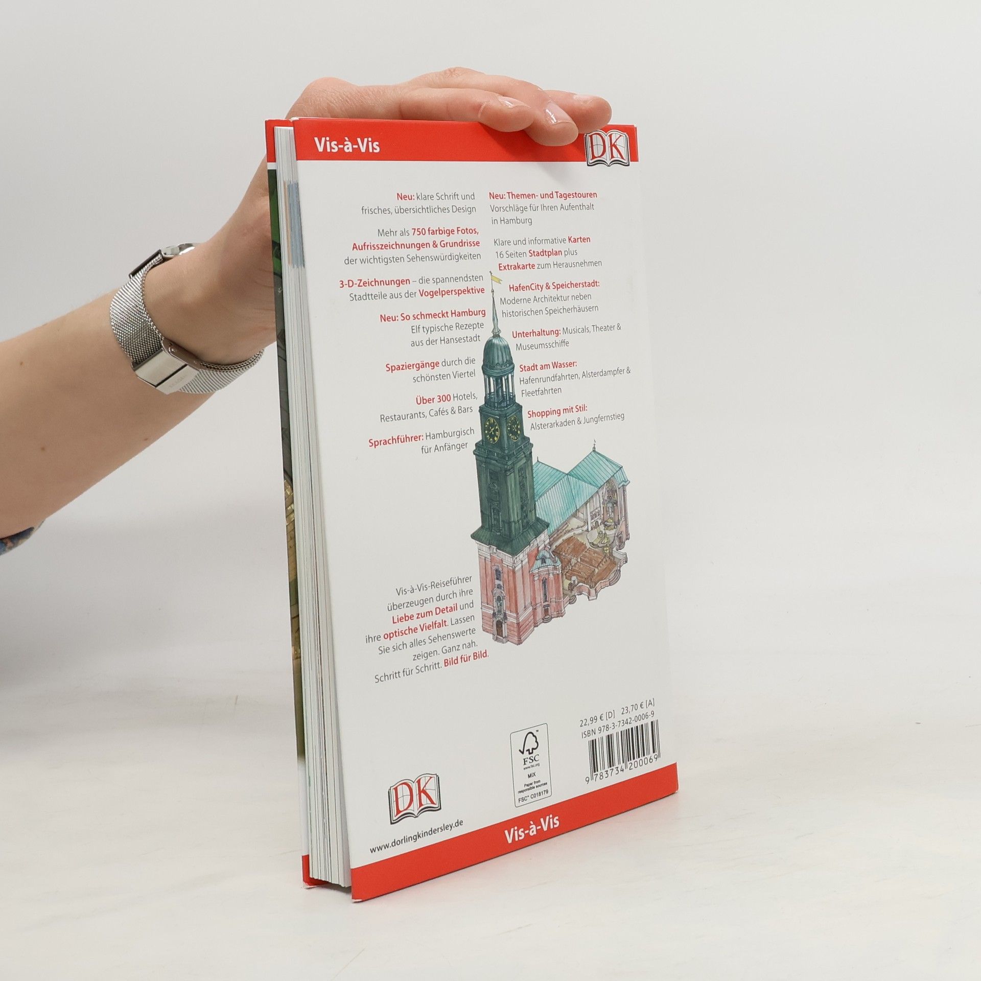 Hamburg, auch „Tor zur Welt“ genannt, ist Deutschlands zweitgrößte Stadt und zählt zu den bedeutendsten Hafen- und Handelsstädten Europas. Sie ist bekannt für St. Pauli, die HafenCity, die Alsterarkaden und den Gänsemarkt. Der Vis-à-Vis Hamburg führt zu den schönsten Orten, den besten Restaurants und schlägt abwechslungsreiche Themen- und Tagestouren vor. Mit dem einzigartigen Mini-Kochbuch können Sie Hamburg auch kulinarisch entdecken. -Abwechslungsreiche Tourenvorschläge für jeden Geschmack: Geschichte und Kultur, Ein Tag am Wasser, Familientag, Zwei Tage in Hamburg oder Fünf Tage in Hamburg -Gezeichnete Spaziergänge um das Rathaus und die Alsterarkaden, durch die schönsten Straßen der Neustadt, durch die Speicherstadt, entlang der Reeperbahn und um die Alster -Aufrisszeichnungen der wichtigsten Sehenswürdigkeiten, zum Beispiel des Rathauses, des Maritimen Museums oder der Cap San Diego -Mit Ausflugstipps für Sylt, Helgoland, Nordfriesische und Ostfriesische Inseln und Bremen -Wetterfeste Extra-Karte zum Herausnehmen -Über 750 hochwertige Farbfotografien -Mini-Kochbuch mit elf typischen Rezepten aus Hamburg – von Labskaus bis Franzbrötchen