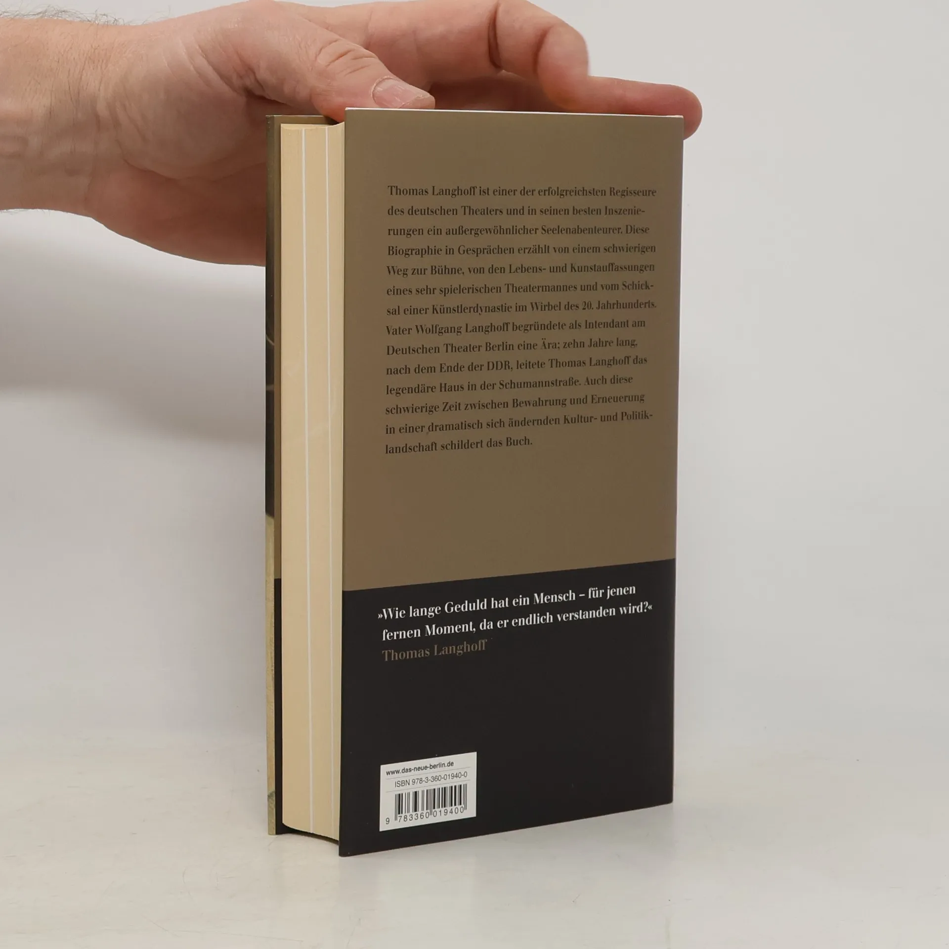 Thomas Langhoff ist einer der bedeutendsten Regisseure des deutschsprachigen Theaters und hat bewiesen, daß neben Vater Wolfgang und Bruder Matthias auch der dritte in der Familie ein Ausnahmetalent ist. Ein spät Erfolgreicher, dem vor allem eines wichtig wurde: Balancevermögen, Freiheit von polemischen Zwängen. Die Autobiographie in Gesprächen legt die Geschichte eines Lebens im Spannungsfeld zweier Zeitenwenden – 1945 und 1989 – offen, und die Lebens- und Kunstauffassungen eines sehr spielerischen Theatermannes. Neben den Interviews enthält das Buch einen porträtierenden Essay von Hans-Dieter Schütt, Tagebuchnotizen Langhoffs, Briefe des Vaters, ein Gespräch mit dem in Paris lebenden Bruder und Beiträge von Weggefährten.