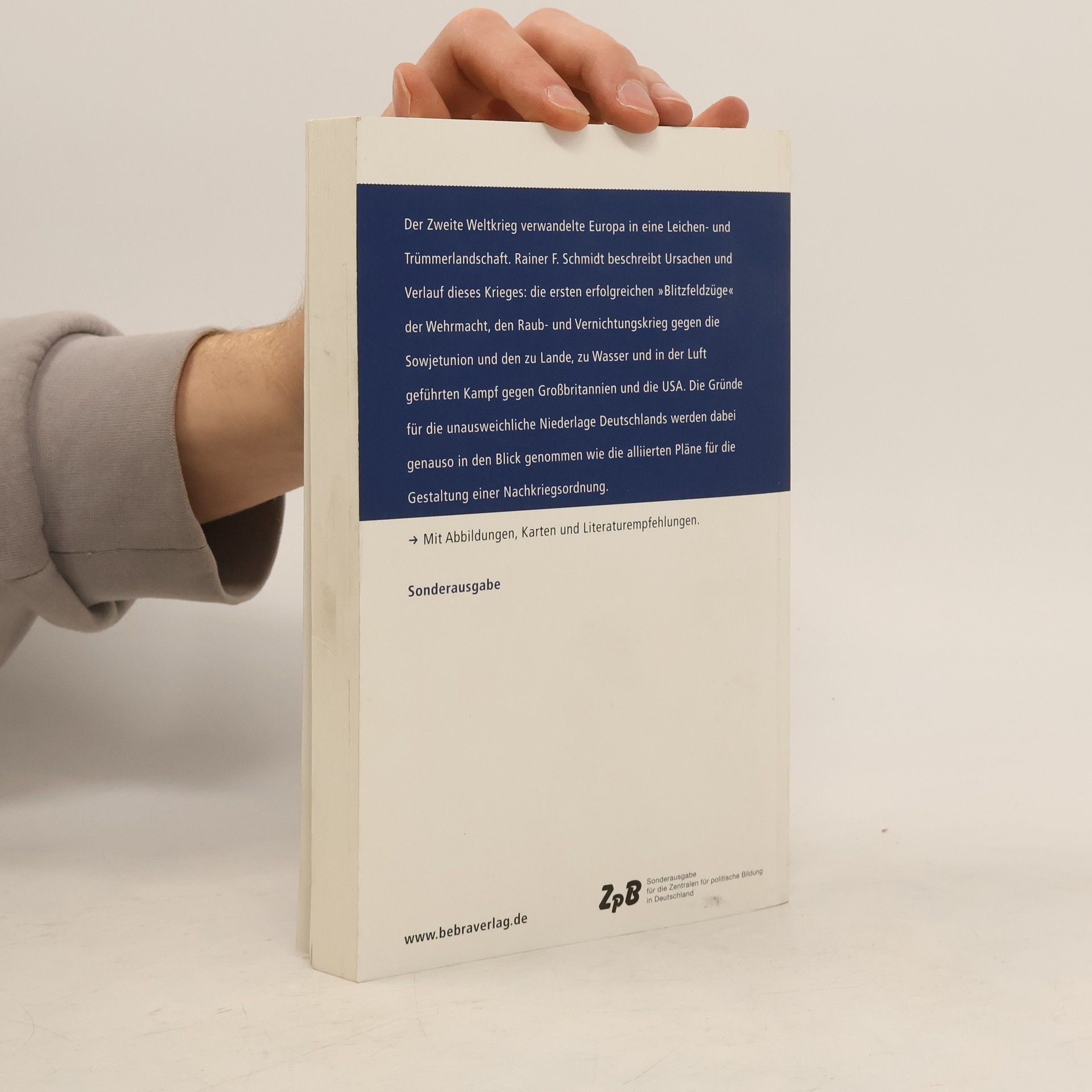 Rainer Schmidt beschreibt in dieser fundierten und gut lesbaren Geschichte des ZWeiten Weltkriegs die Ursachen und kriegstreibenden Faktoren des Krieges, geht dabei unter anderem auf die Blitzfeldzüge und den Vernichtungskrieg gegen die Sowjetunion ein und zeigt die Bilanz und Folgen des Zweiten Weltkrieges auf. Mit zahlreichen Karten und Abbildungen.