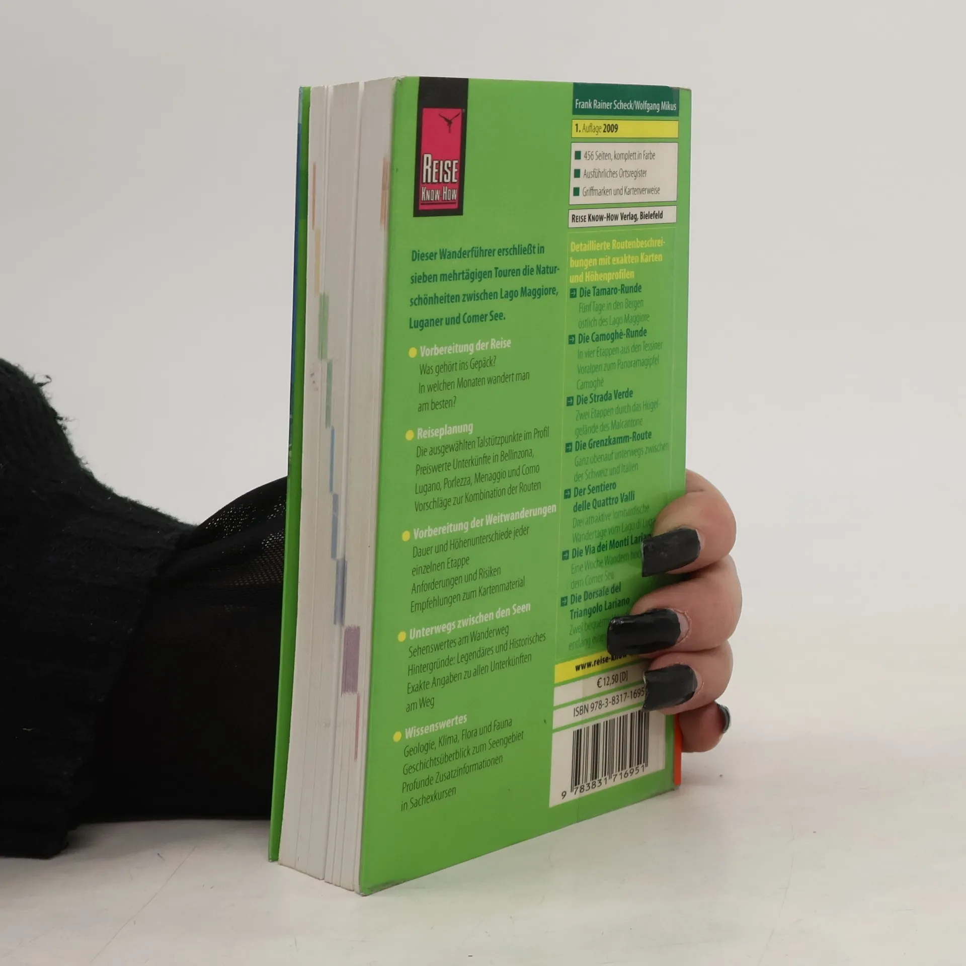 Sieben mehrtägige Wanderungen, zwei bis sieben Etappen lang, führen in die Höhen zwischen Lago Maggiore, Luganer See und Comer See, wo die schweizerisch-italienische Staatsgrenze verläuft. Die faszinierende voralpine Region bietet hohe Buchenwälder ebenso wie alte Kastanienforsten, weite Almflächen und unzählige kleine Maiensässen, dazu malerische Taldörfer nicht selten alles in einer einzigen Etappe. Immer wieder fesseln die Tiefblicke in die fjordartigen Seenbecken. Übernachtet wird in urigen Dorfhotels und in gut ausgestatteten Berghütten, mal hüben mal drüben der Grenze. Exakte Angaben zu allen Unterkünften. Der Grüne Weg des Malcantone, die Camoghè-Runde, die Tamaro-Runde, die Grenzkamm-Route, der Weg der Vier Täler zwischen Luganer und Comer See, die Via dei Monti Lariani in den Westhängen über dem Comer See und der Weg des Larianischen Dreiecks: zusammen über 300 Wanderkilometer vom Feinsten.