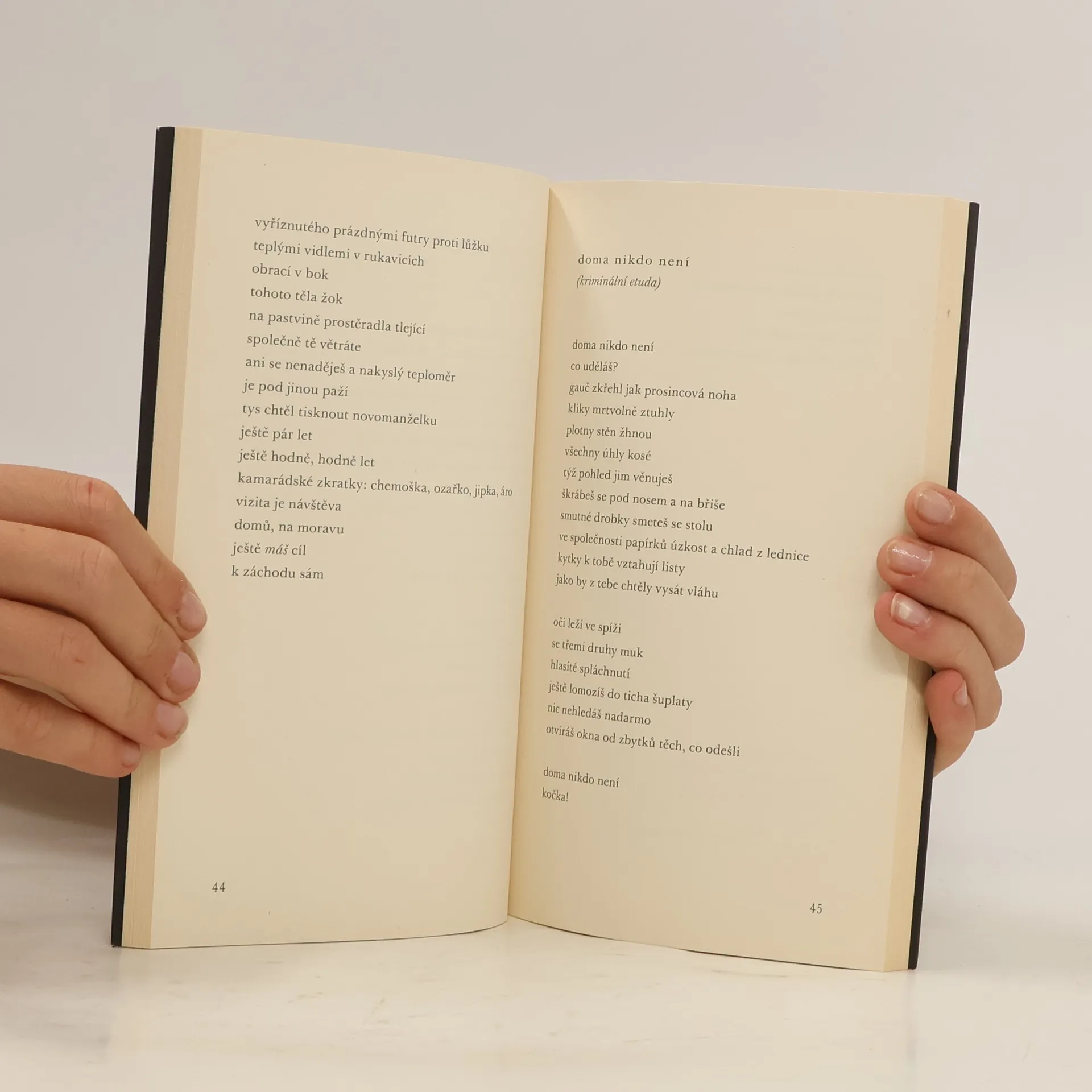 Poesie – jak krásná – ženská... Nikde není určeno, že úkolem poezie je sdělovat krásu. Zvláštní blaho působí i pohyb drátěného kartáče proti srsti, tedy poezie, která ukazuje naši slabost. Verše, které přesně zaznamenávají, kde a jak v životě selháváme, do jakých propastí jsme se vrhli a proč. Vyzrálý básnický debut strašnické básnířky (*1977) přináší napětí, nejistotu, vzrušení. A možná uvolnění. Možná. J.S.