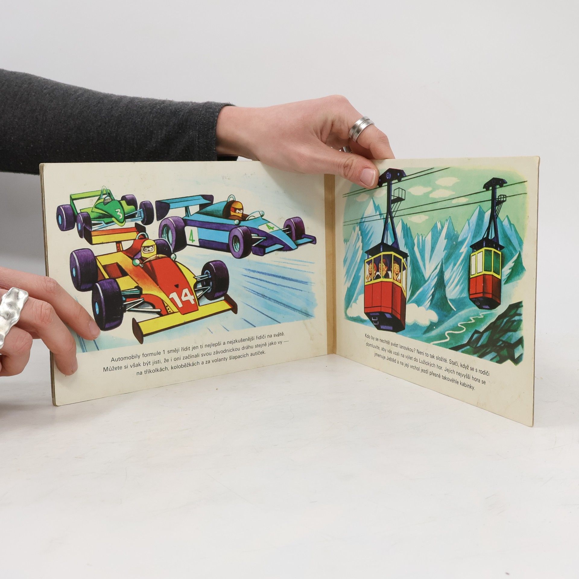 1.vydání dětského naučného leporela. Jak se cestovalo kdysi a jak se dá cestovat dnes. V poušti, vysoko v horách, po dálnici i železnici. Doprovodný text není rýmovaný, na každé stránce je 2-3 řádkové srozumitelně vysvětlení.