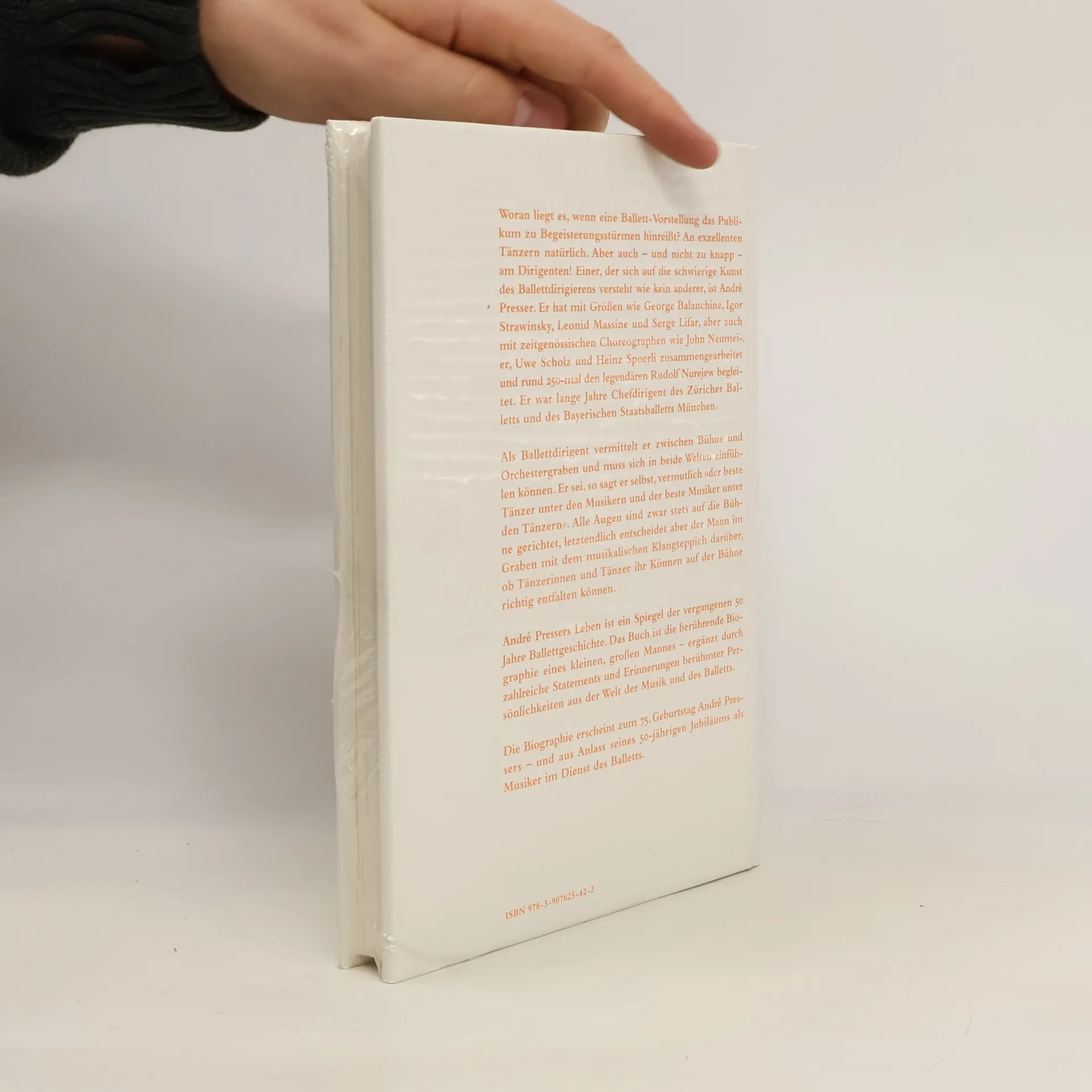 Was macht eine Ballett-Vorstellung zu einem begeisternden Erlebnis? Natürlich exzellente Tänzer, aber auch der Dirigent spielt eine entscheidende Rolle. André Presser, ein Meister des Ballettdirigierens, hat mit Größen wie George Balanchine, Igor Strawinsky und Rudolf Nurejew zusammengearbeitet. Er war Chefdirigent des Zürcher Balletts und des Bayrischen Staatsballetts und hat rund 250 Aufführungen mit Nurejew begleitet. Als Ballettdirigent verbindet er die Welten von Bühne und Musik und muss sich in beiden Bereichen einfühlen können. Presser beschreibt sich selbst als 'den besten Tänzer unter den Musikern und den besten Musiker unter den Tänzern'. Während die Aufmerksamkeit des Publikums auf der Bühne liegt, ist es letztlich der Dirigent, der mit seinem musikalischen Klangteppich bestimmt, wie gut die Tänzer ihr Können entfalten können. Sein Leben spiegelt 50 Jahre Ballettgeschichte wider. Diese berührende Biographie eines kleinen, großen Mannes wird durch zahlreiche Erinnerungen und Statements berühmter Persönlichkeiten aus der Orchestermusik und dem Ballett ergänzt. Sie erscheint anlässlich seines 75. Geburtstags und seines 50-jährigen Jubiläums als Musiker im Ballett.