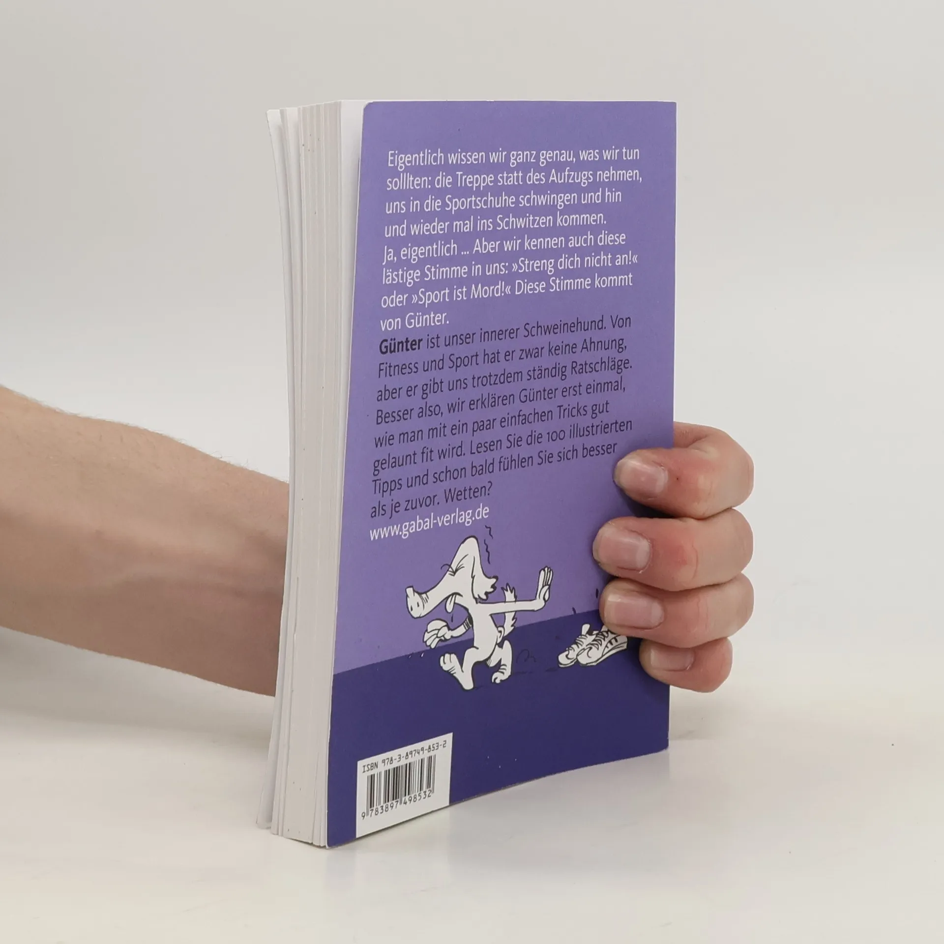 Eigentlich wissen wir ganz genau, was wir tun solllten: die Treppe statt des Aufzugs nehmen, uns in die Sportschuhe schwingen und hin und wieder mal ins Schwitzen kommen. Ja, eigentlich … Aber wir kennen auch diese lästige Stimme in uns: »Streng dich nicht an!« oder »Sport ist Mord!« Diese Stimme kommt von Günter. Günter ist unser innerer Schweinehund. Von Fitness und Sport hat er zwar keine Ahnung, aber er gibt uns trotzdem ständig Ratschläge. Besser also, wir erklären Günter erst einmal, wie man mit ein paar einfachen Tricks gut gelaunt fit wird. Lesen Sie die 100 illustrierten Tipps und schon bald fühlen Sie sich besser als je zuvor. Wetten?