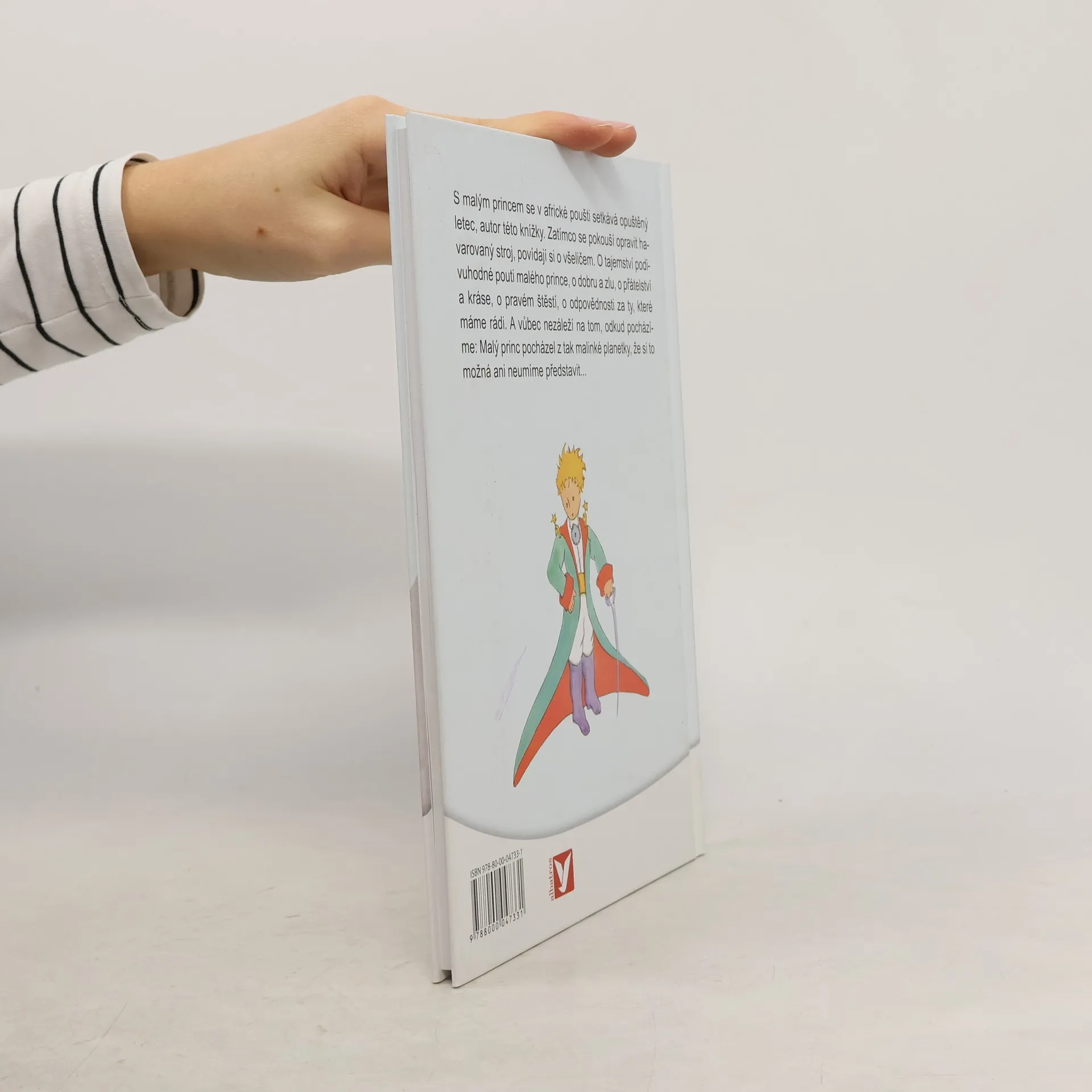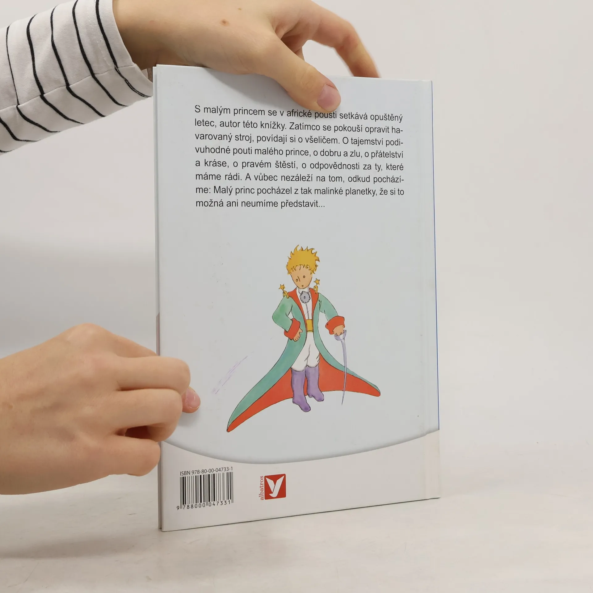 S Malým princem se v africké poušti setkává opuštěný letec, autor této knížky. Zatímco se pokouší opravit havarovaný stroj, povídají si o všeličem. O tajemství podivuhodné pouti Malého prince, o dobru a zlu, o přátelství a kráse, o pravém štěstí, o odpovědnosti za ty, které máme rádi. A vůbec nezáleží na tom, odkud pocházíme: Malý princ pocházel z tak malinké planetky, že si to možná ani neumíme představit...