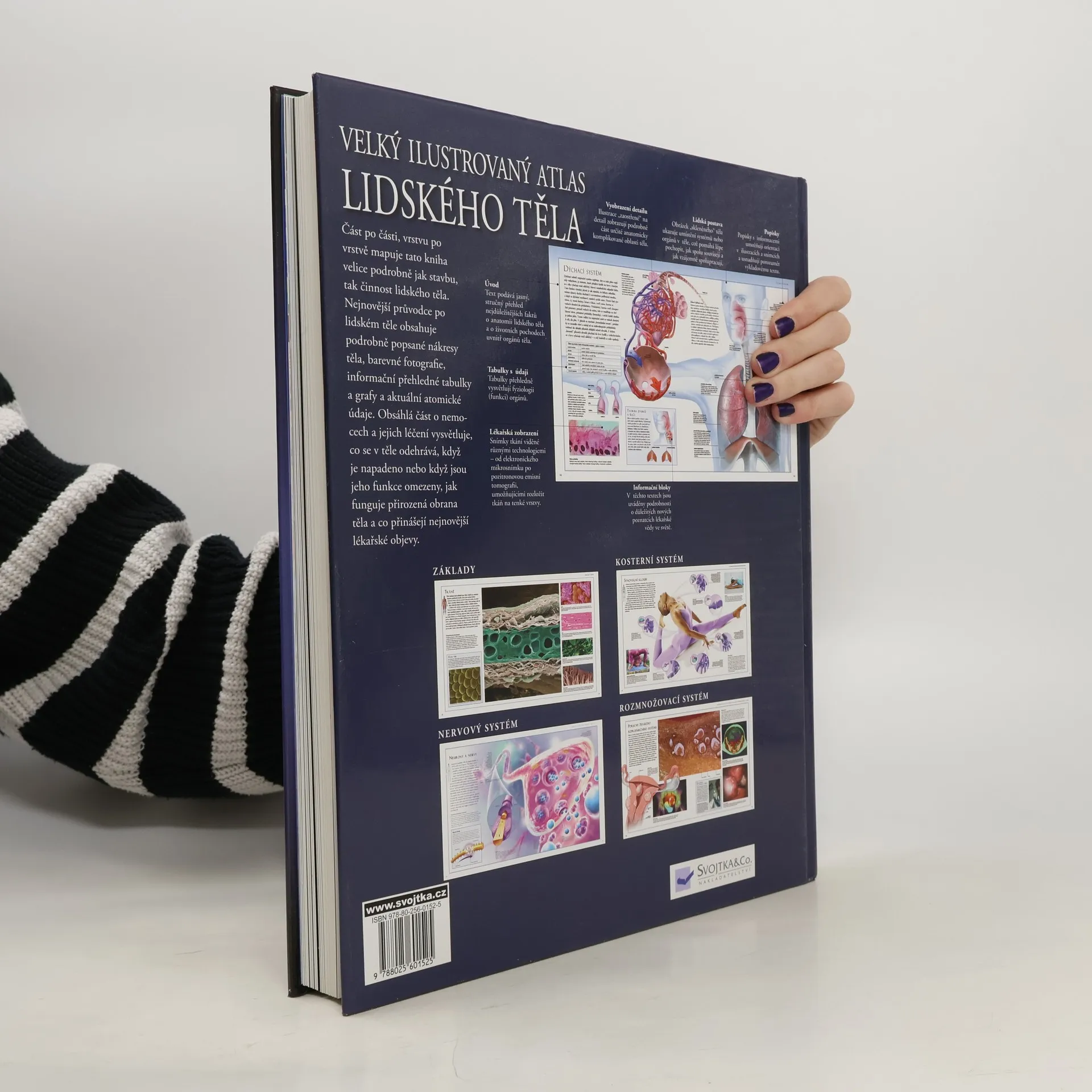 Nepostradatelný pomocník na cestě k porozumění, jak je lidské tělo uspořádáno a jak pracuje. Kniha začíná pohledem na základní struktury těla (kostra a svaly) včetně kapitol o buňkách a tkáních, DNA a genetice i přehledu infekčních chorob. Další oddíly se věnují vždy jednomu z hlavních orgánových systémů těla. V celé knize se objasňuje podstata všech fyziologických procesů – od dýchání, zažívání a rytmické činnosti srdce až po skutečnost, jak nervový a endokrinní systém nepřetržitě tyto procesy uvnitř těla koordinují a ovlivňují. Opomenuta nezůstala ani pojednání o tom, jakou roli v udržení života hrají kůže, svaly a kosti, imunitní i vylučovací systém a v neposlední řadě reprodukční orgány. Kniha obsahuje zhruba 700 fotografií a ilustrací tělesných systémů a jejich částí.