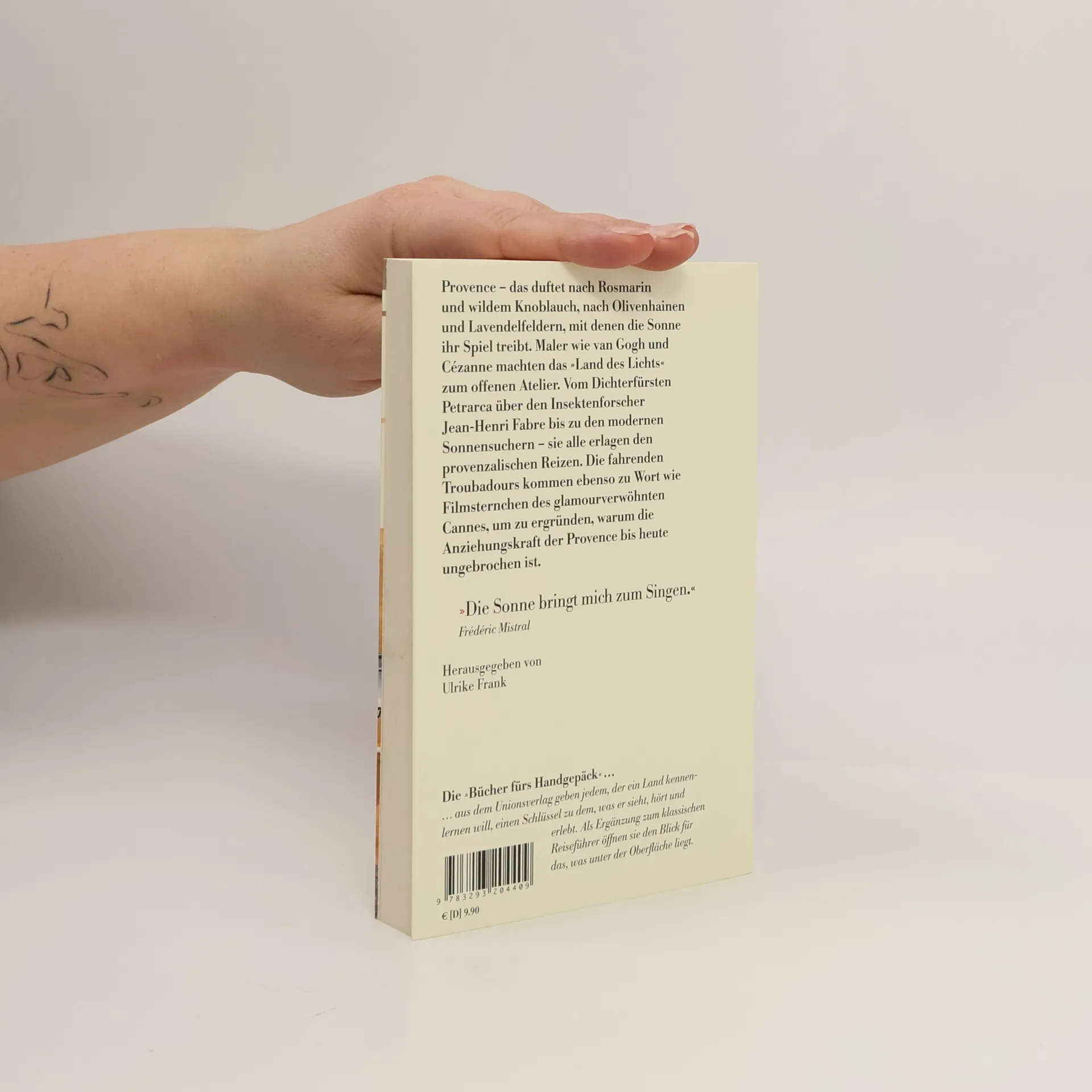 Maler wie van Gogh und Cézanne machten das Land des Lichts zum offenen Atelier. Vom Dichterfürsten Petrarca bis zum Insektenforscher Jean-Henri Fabre – sie alle erlagen den provenzalischen Reizen. Die fahrenden Troubadours kommen ebenso zu Wort wie Filmsternchen des glamourverwöhnten Cannes, um zu ergründen, warum die Anziehungskraft der Provence bis heute ungebrochen ist. Jean Giono: Die Provence, ein Ölfleck Jean-Henri Fabre: Die Zikade Stendhal: Die Liebe in der Provence bis zur Eroberung durch die nordischen Barbaren Frédéric Mistral: Kindheit im Dorf der Froschesser Marcel Pagnol: Mit dem Maultierkarren ins Gebirge Francesco Petrarca: Die Besteigung des Mont Ventoux Vincent van Gogh: Briefe aus Arles Alphonse Daudet: Das Leuchten der Camargue Marie Mauron: Gelobtes Land der Zigeuner Peter Mayle: Ausflug nach Aix-en-Provence Peter Handke: Die Lehre der Sainte-Victoire Erika und Klaus Mann: Die Noblesse der blauen Küste Sybille Bedford: Sanary – Literaturhauptstadt des Exils Gunter Sachs: Rendezvous der Hautevolee Walter Benjamin: Haschisch in Marseille Jean-Claude Izzo: Stadt des Lichts und des Windes Dies und vieles mehr über die Provence …
