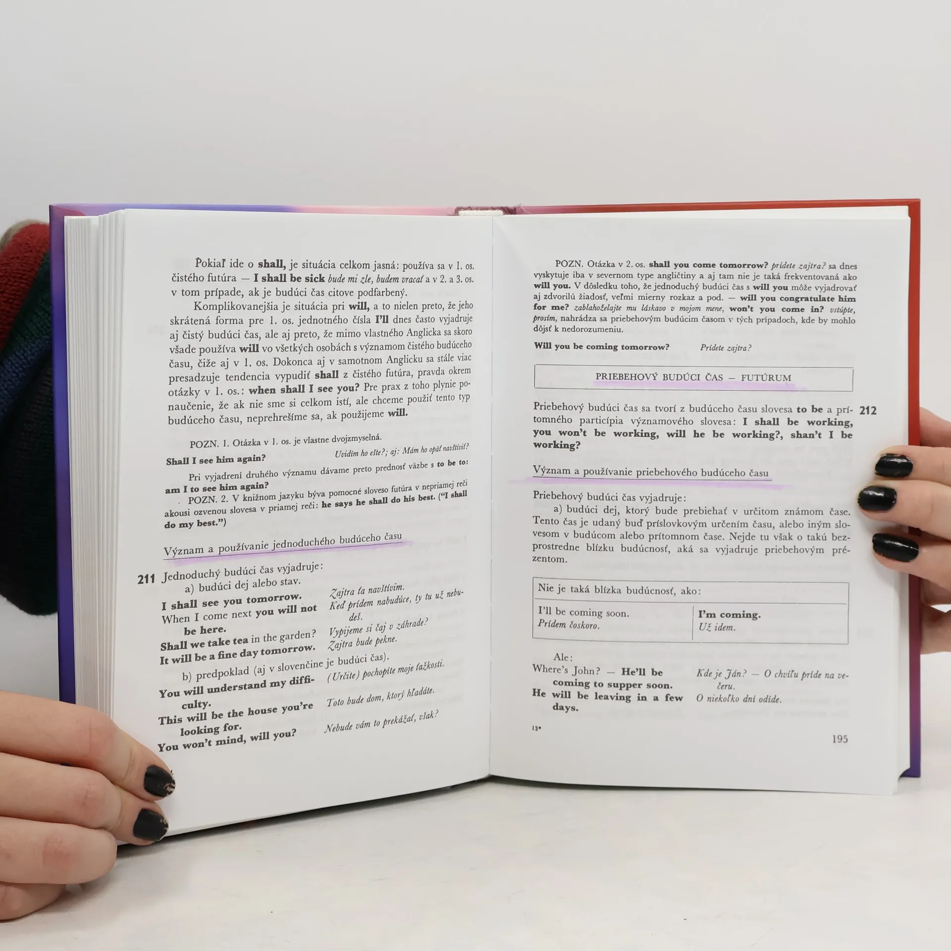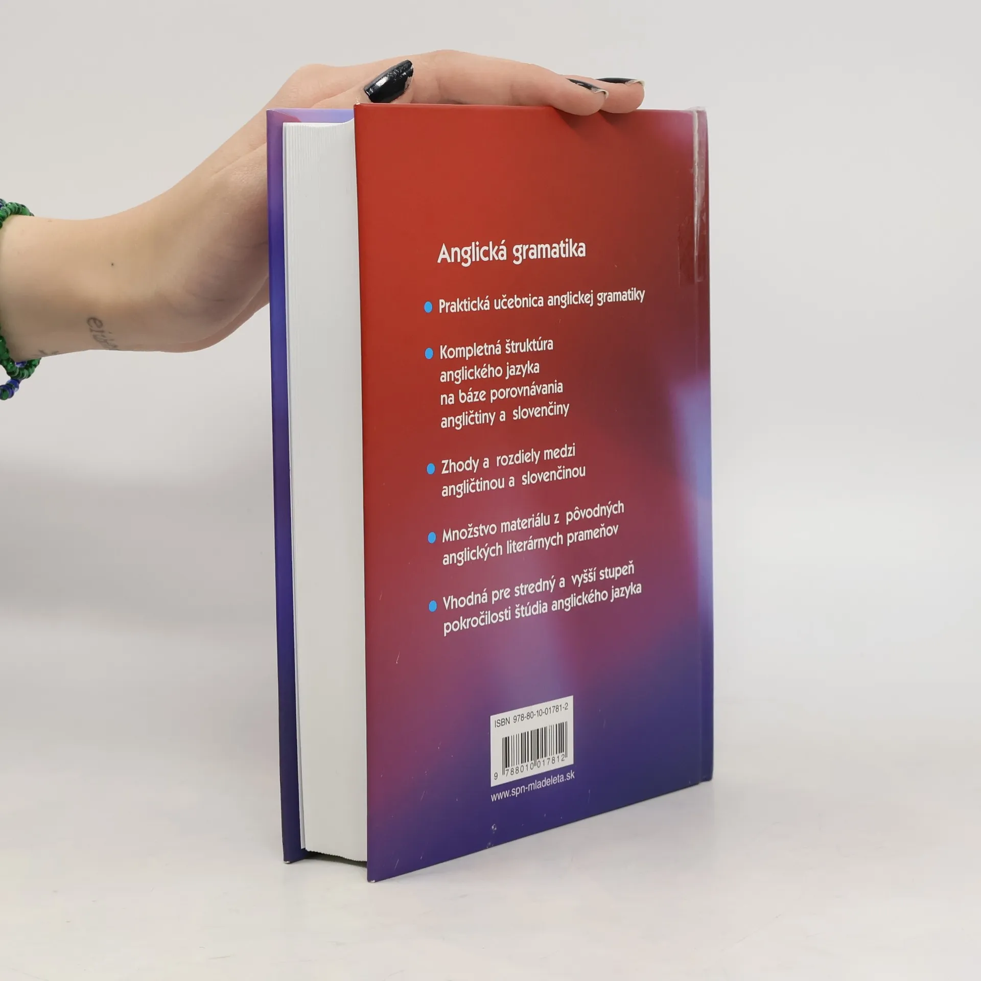 Kniha prináša kompletnú gramatickú štruktúru anglického jazyka na báze porovnania so slovenčinou, pričom poukazuje na zhody, ale aj rozdiely medzi týmito dvoma jazykmi. Prináša množstvo materiálu z pôvodných anglických literárnych prameňov. Je prakticky členená a obsahuje bohatý slovný aj vecný register. Je vhodná pre stredný a vyšší stupeň pokročilosti.