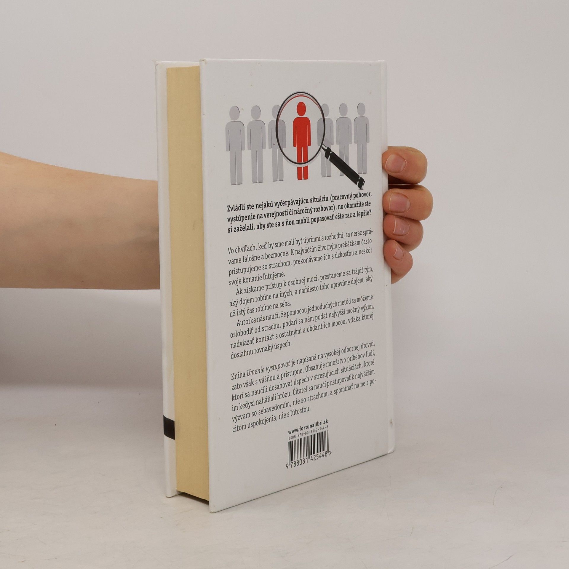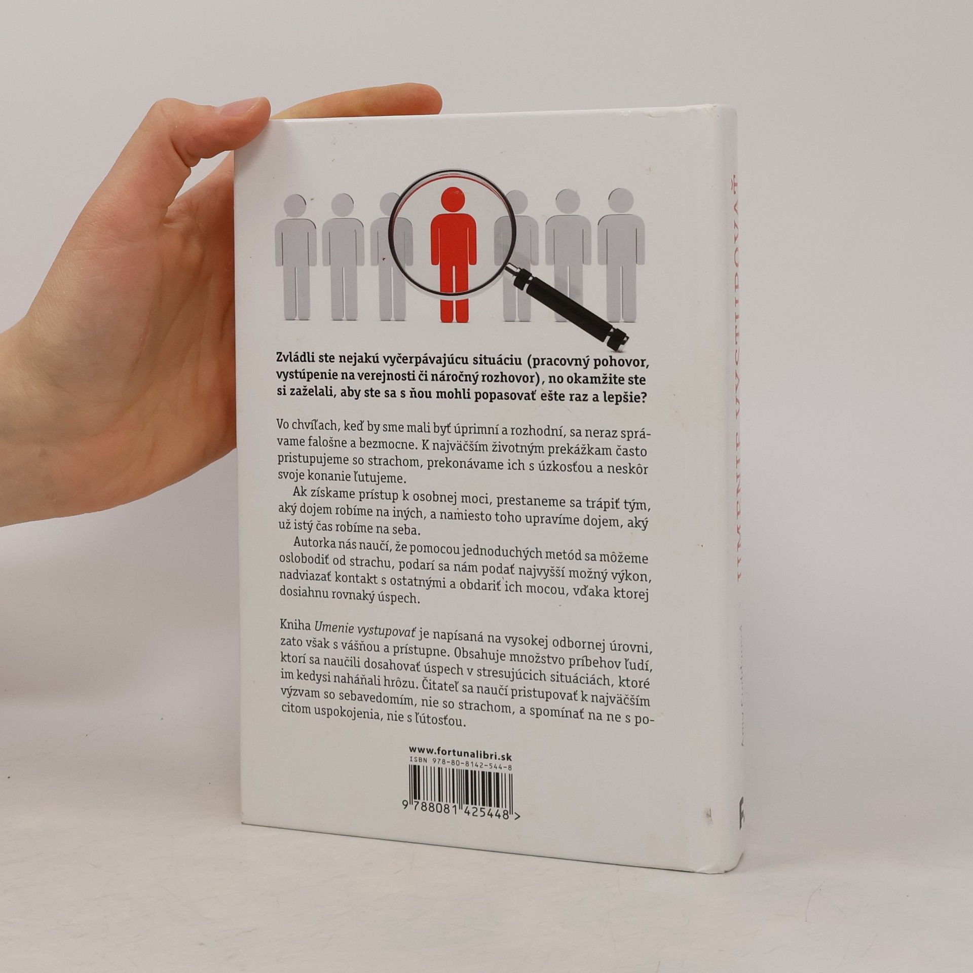 Zvládli ste nejakú vyčerpávajúcu situáciu (pracovný pohovor, vystúpenie na verejnosti či náročný rozhovor), no okamžite ste si zaželali, aby ste sa s ňou mohli popasovať ešte raz a lepšie? Vo chvíľach, keď by sme mali byť úprimní a rozhodní, sa neraz správame falošne a bezmocne. K najväčším životným prekážkam často pristupujeme so strachom, prekonávame ich s úzkosťou a neskôr svoje konanie ľutujeme. Ak získame prístup k osobnej moci, prestaneme sa trápiť tým, aký dojem robíme na iných, a namiesto toho upravíme dojem, aký už istý čas robíme na seba. Autorka nás naučí, že pomocou jednoduchých metód sa môžeme oslobodiť od strachu, podarí sa nám podať najvyšší možný výkon, nadviazať kontakt s ostatnými a obdariť ich mocou, vďaka ktorej dosiahnu rovnaký úspech. Kniha Umenie vystupovať je napísaná na vysokej odbornej úrovni, zato však s vášňou a prístupne. Obsahuje množstvo príbehov ľudí, ktorí sa naučili dosahovať úspech v stresujúcich situáciách, ktoré im kedysi naháňali strach. Čitateľ sa naučí pristupovať k najväčším výzvam so sebavedomím, nie so strachom, a spomínať na ne s pocitom uspokojenia, nie s ľútosťou.