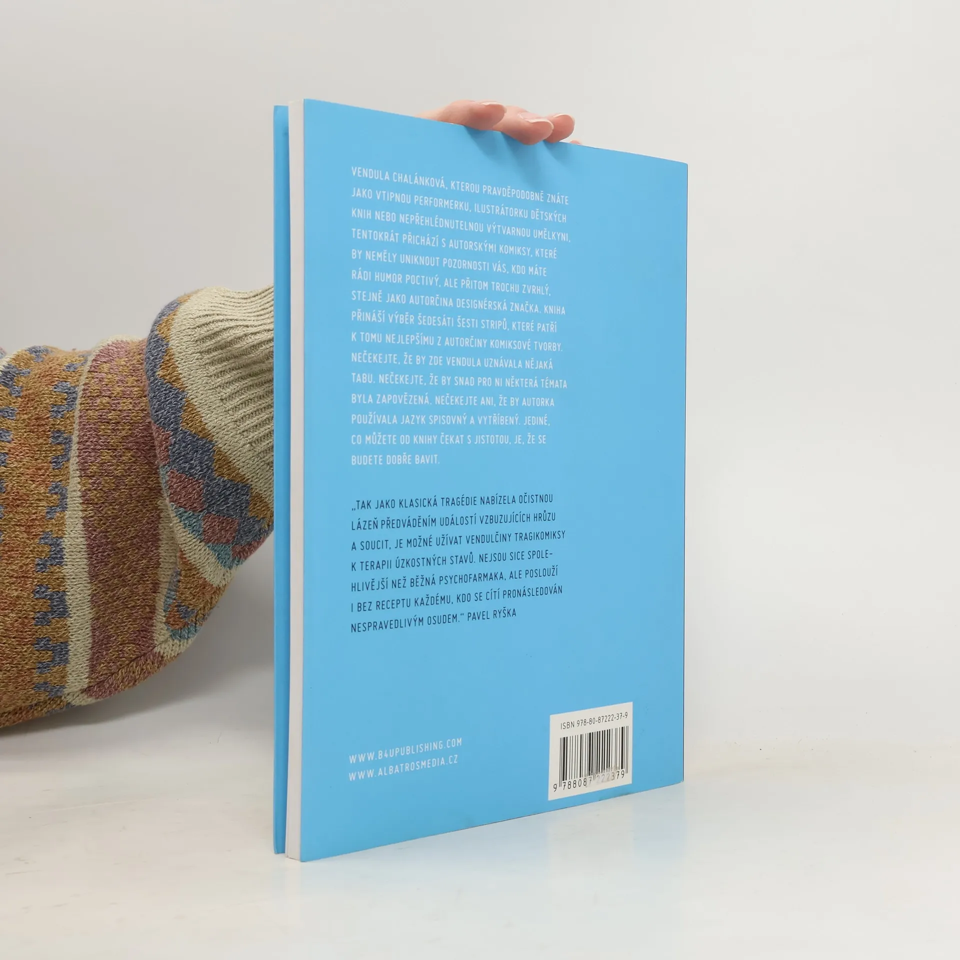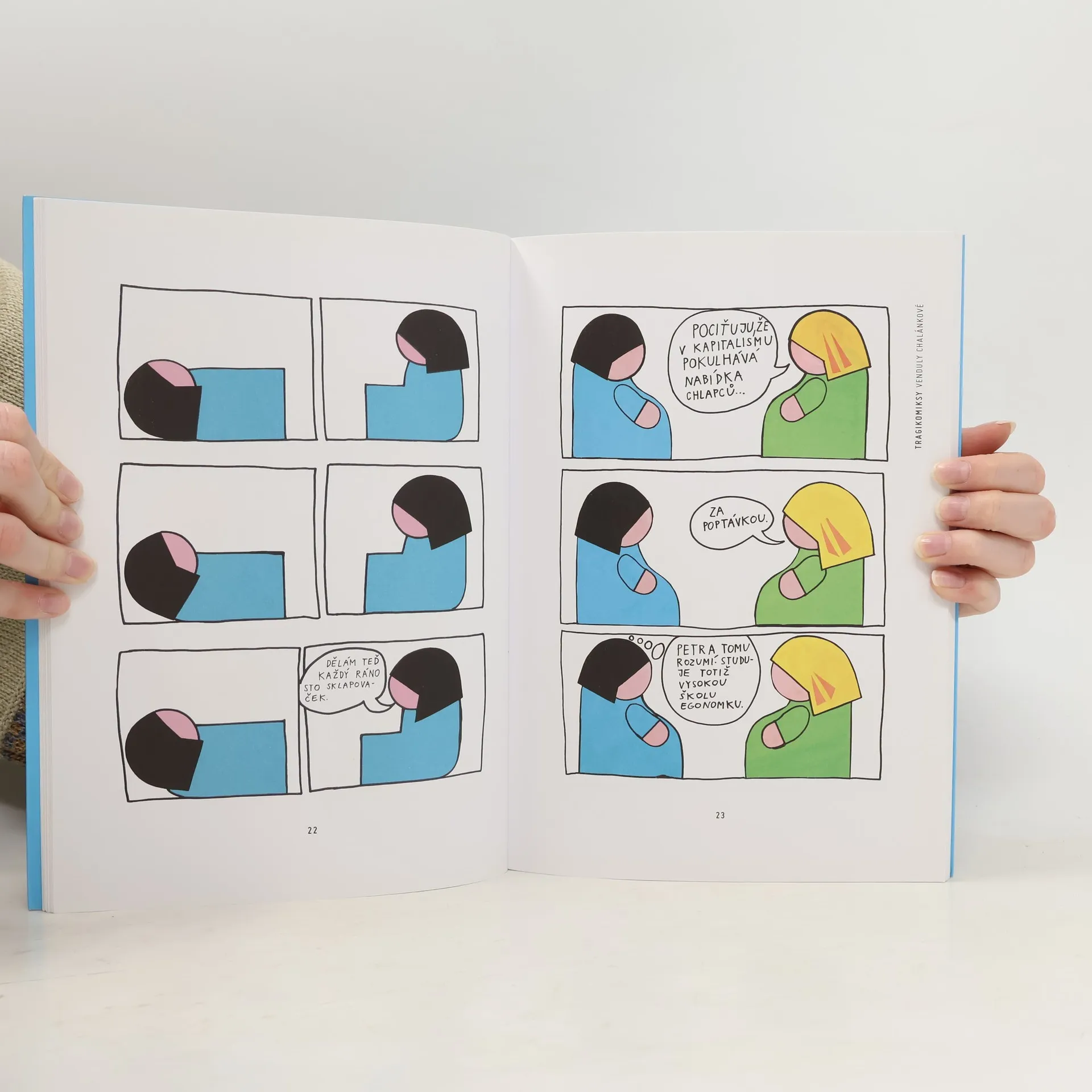 Podtitul: Tragikomiksy Venduly Chalánkové Vendula Chalánková, kterou pravděpodobně znáte jako vtipnou performerku, ilustrátorku dětských knih nebo nepřehlédnutelnou výtvarnou umělkyni, tentokrát přichází s autorskými komiksy, které by neměly uniknout pozornosti vás, kdo máte rádi humor poctivý, ale přitom trochu zvrhlý, stejně jako autorčina designérská značka. Kniha přináší výběr šedesáti šesti stripů, které patří k tomu nejlepšímu z autorčiny komiksové tvorby. Nečekejte, že by zde Vendula uznávala nějaká tabu. Nečekejte, že by snad pro ni některá témata byla v jejich komiksech zapovězená. Nečekejte ani, že by autorka používala jazyk spisovný a vytříbený. Jediné, co můžete od knihy čekat s jistotou, je, že se budete dobře bavit. „Tak jako klasická tragédie nabízela očistnou lázeň předváděním událostí vzbuzujících hrůzu a soucit, je možné užívat Vendulčiny tragikomiksy k terapii úzkostných stavů. Nejsou sice spolehlivější než běžná psychofarmaka, ale poslouží i bez receptu každému, kdo se cítí pronásledován nespravedlivým osudem.“ Pavel Ryška