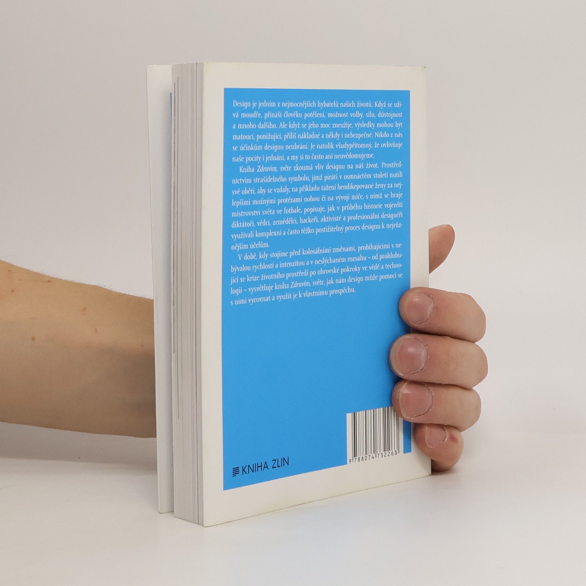 Design je jedním z nejmocnějších hybatelů našich životů. Když se užívá moudře, přináší člověku potěšení, možnost volby, sílu, důstojnost a mnoho dalšího. Ale když se jeho moc zneužije, výsledky mohou být matoucí, ponižující, příliš nákladné a někdy i nebezpečné. Nikdo z nás se účinkům designu neubrání. Je natolik všudypřítomný, že ovlivňuje naše pocity i jednání, často aniž bychom si to uvědomili. Kniha Zdravím, světe zkoumá vliv designu na náš život. Od strašidelného symbolu, jímž piráti v osmnáctém století nutili své oběti, aby se vzdaly, přes tažení jedné ženy za nejlepšími možnými protézami nohou až po vývoj míče, s nímž se hraje mistrovství světa ve fotbale, popisuje, jak v průběhu historie vojenští diktátoři, vědci, zemědělci, hackeři, aktivisté a profesionální designéři využívali komplexní a často těžko postižitelný proces designu k nejrůznějším účelům. V době, kdy stojíme před kolosálními změnami, probíhajícími s nebývalou rychlostí a intenzitou a v neslýchaném rozsahu – od prohlubující se krize životního prostředí po obrovské pokroky ve vědě a technologii – vysvětluje kniha Zdravím, světe, jak nám design může pomoci se s nimi vyrovnat a využít je k našemu prospěchu.
