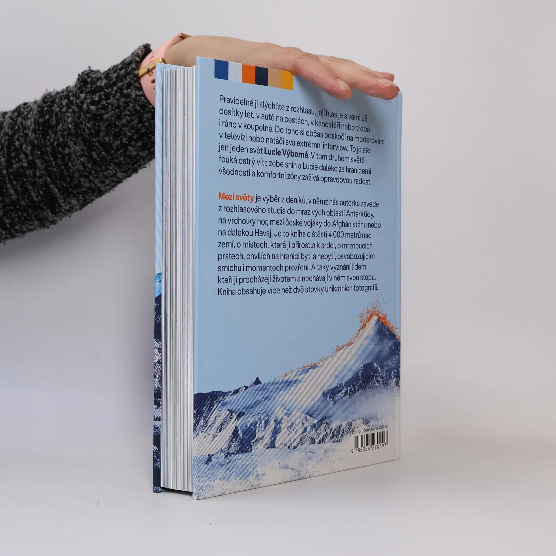Pravidelně ji slýcháte z rozhlasu, její hlas je s vámi už desítky let, v autě na cestách, v kanceláři nebo třeba i ráno v koupelně. Do toho si občas odskočí na moderování v televizi nebo natáčí svá extrémní interview. To je ale jen jeden svět Lucie Výborné. V tom druhém světě fouká ostrý vítr, zebe sníh a Lucie daleko za hranicemi všednosti a komfortní zóny zažívá opravdovou radost. MEZI SVĚTY je výběr z deníků, v nichž nás autorka zavede z rozhlasového studia do mrazivých oblastí Antarktidy, na vrcholky hor, mezi české vojáky do Afghánistánu nebo na dalekou Havaj. Je to kniha o štěstí 4 000 metrů nad zemí, o místech, která jí přirostla k srdci, o mrznoucích prstech, chvílích na hranici bytí a nebytí, osvobozujícím smíchu i momentech prozření. A taky vyznání lidem, kteří jí procházejí životem a nechávají v něm svou stopu. Kniha obsahuje více než dvě stovky unikátních fotografií.