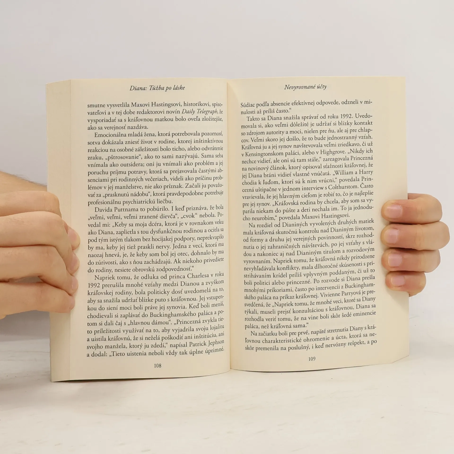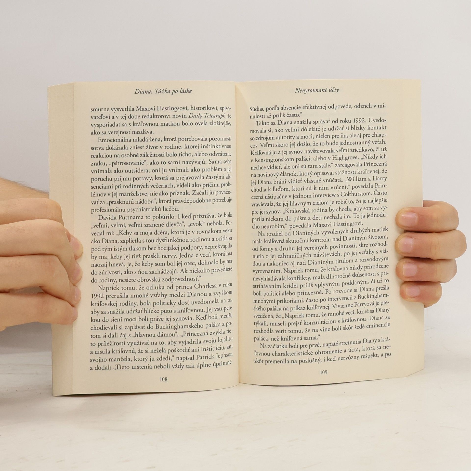 Krásna a milovaná ikona. Osamelá, strápená duša. Skutočnú zložitosť príbehu Diany, Princeznej waleskej, prvýkrát odhalila kniha Andrewa Mortona Diana: Jej skutočný príbeh . Až po jej smrti vysvitlo, že škandalózna biografia vznikla za plnej a intímnej spolupráce s Princeznou. Životopisec, ktorého si zvolila, v tejto štúdii jej posledných piatich rokov života odhaľuje skutočne výnimočný príbeh nečestných úmyslov, zrady a cynickej manipulácie, ktorý by aj v románovej podobe vyznel ako nanajvýš nepravdepodobný. Sfalšované dokumenty, sledovanie tajnými službami, či už skutočné alebo domnelé, krádež, sprenevera, klamstvá a množstvo sluhov, zamestnancov, poradcov a milencov... To všetko hrá významnú rolu v tomto portréte odhaľujúcom život dospelej Princeznej. Je to verný a nestranný opis jednej z najobdivovanejších a najvplyvnejších postáv našej éry.