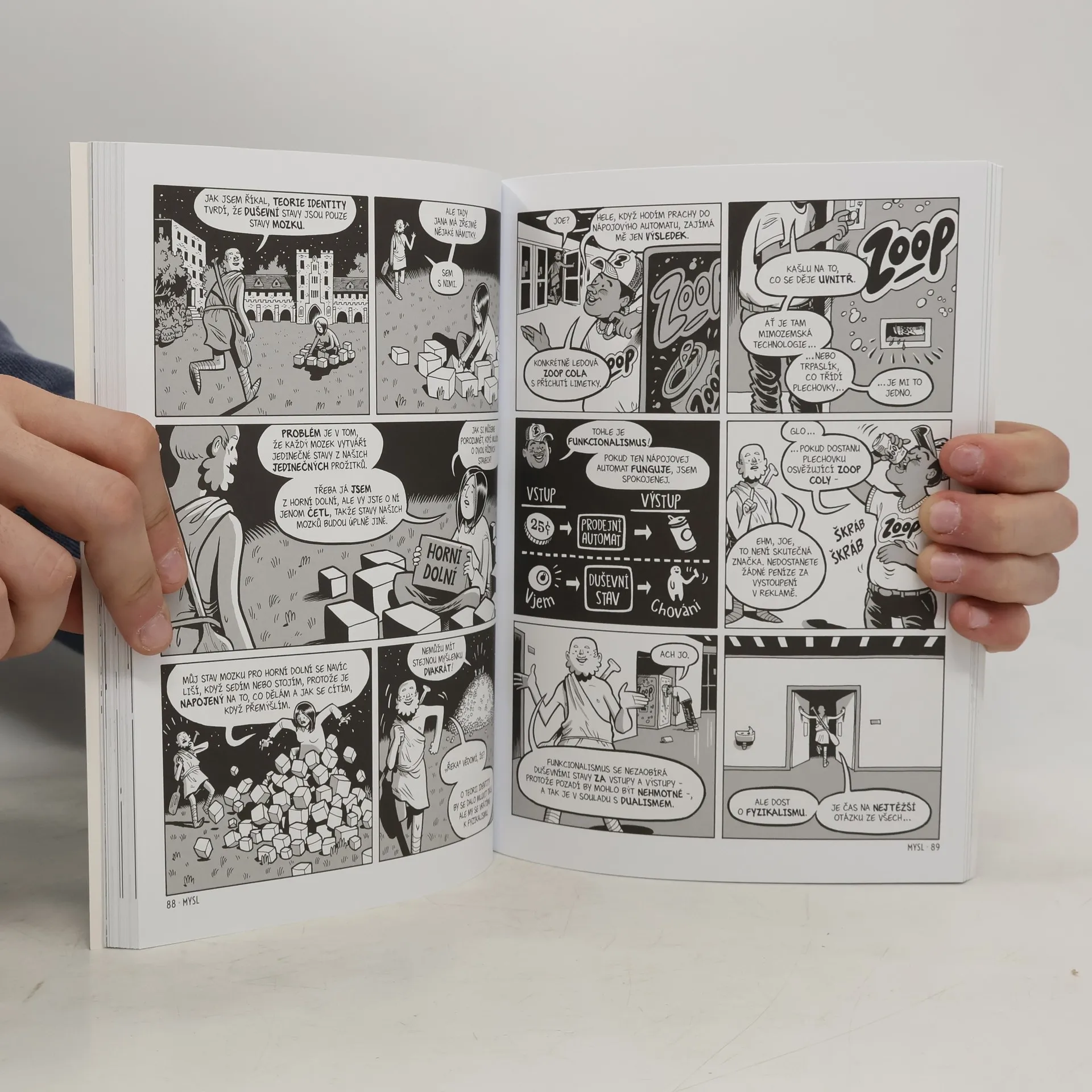 Dvojice autorů nás v tomto komiksu provádí dějinami filozofie vtipným a svižným způsobem. Myšlenky západních velikánů se zde otevírají úplně pro každého a zbavují nás strachu z velkých jmen jako Platon, Aristoteles, Descartes nebo Nietzsche. Mnohdy neprůchodné myšlenkové systémy se vám rozvinou v dlani a probudí zájem o to, jak se naše západní civilizace vyvíjela až do současnosti.