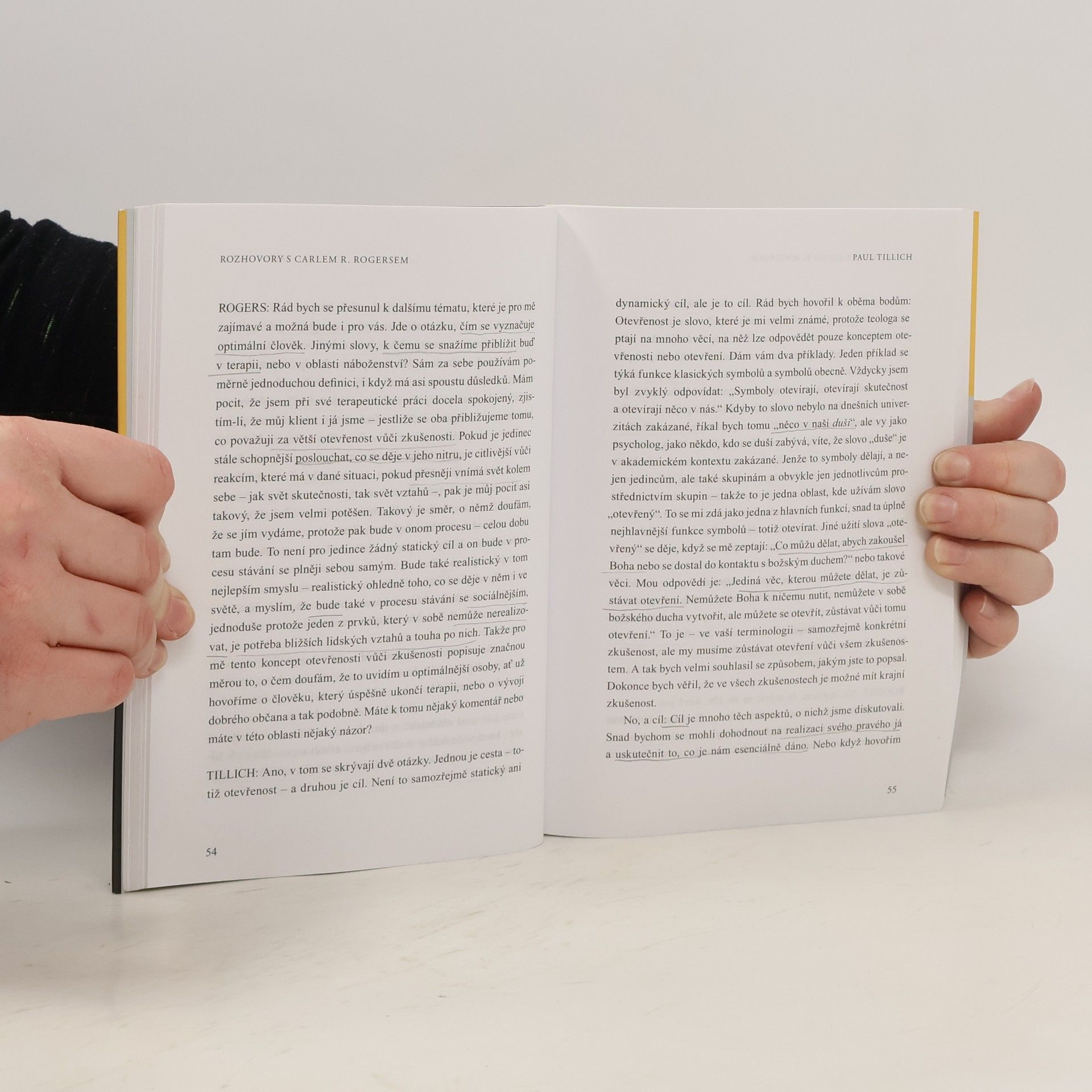 Rozhovory s Carlem R. Rogersem - M. Buber, P. Tillich, B. F. Skinner, M. Polanyi, G. Bateson. Známý psychoterapeut Carl R. Rogers absolvoval během svého života řadu rozhovorů s významnými osobnostmi nejen psychologie, ale i dalších oborů. Tyto rozhovory jsou vždy setkáním dvou hlubokých myslitelů, pro něž je dialog cestou, jak znovu promýšlet vlastní postoje a názory. Rogers v této knize rozmlouvá s chasidským filozofem M. Buberem, protestantským teologem P. Tillichem, behavioristickým psychologem B. F. Skinnerem, vědci a filozofy M. Polayim a G. Batesonem. Jsme v ní mimo jiné svědky živých polemik, hájení odlišných pozic, nesouhlasu, které dávají nahlédnout do bohatého myšlenkového a duchovního světa všech zúčastněných. Kniha je nesmírně inspirující četbou pro všechny, které zajímá nejen osobnost Carla R. Rogerse, ale i intelektuální atmosféra doby, v níž žil a s řadou dalších lidí působil.