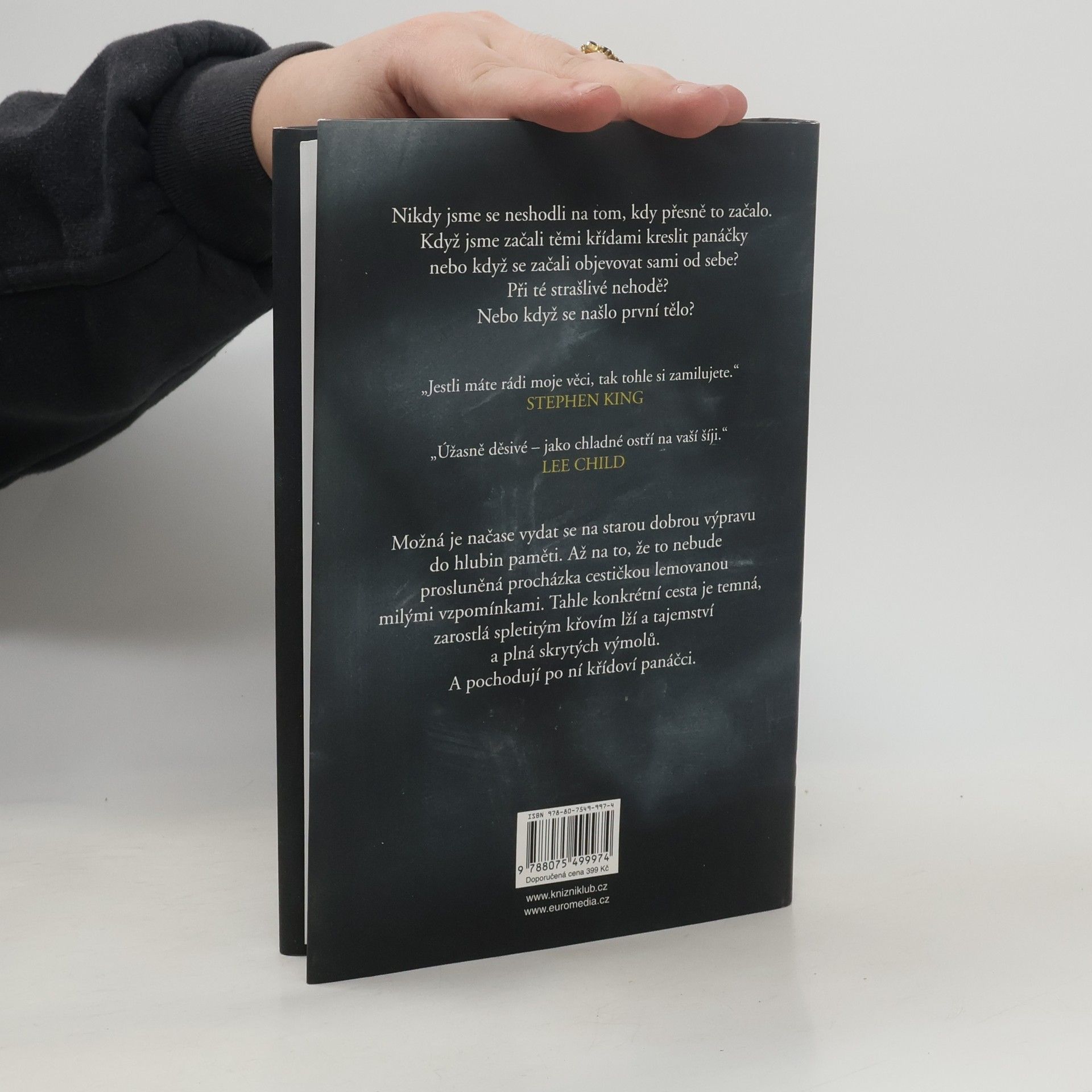 Všichni máme tajemství. Před některými utíkáme, ale ona si nás najdou. A některé hry končí vždycky stejně… Mysteriózní thriller Kříďák je tu – a nedá se před ním utéct. Cítíte to v lese, ve škole i na hřišti, cítíte to v domech a v lunaparku. Cítíte to na většině míst v malém městečku Anderbury… strach, že vás někdo nebo něco sleduje. Začalo to na pouti roku 1986, kdy se stala ta nehoda. Toho dne potkal dvanáctiletý Eddie pana Hallorana – pana Křídu. Ten přivedl Eddieho na myšlenku nevinné hry pro něj a partu jeho přátel: za pomoci křídových kreseb si mohli nechávat vzkazy. Byla to docela zábava – dokud je křídoví panáčci nedovedli k tělu. Mrtvému dívčímu tělu, rozřezanému na kousky. Tahle událost se jim nesmazatelně vryla do nočních můr. A třicet let poté najdou v dopisních schránkách záhadnou obálku – s panáčkem a kusem křídy. Strašáci z dětských let totiž možná stále dokážou zabíjet.