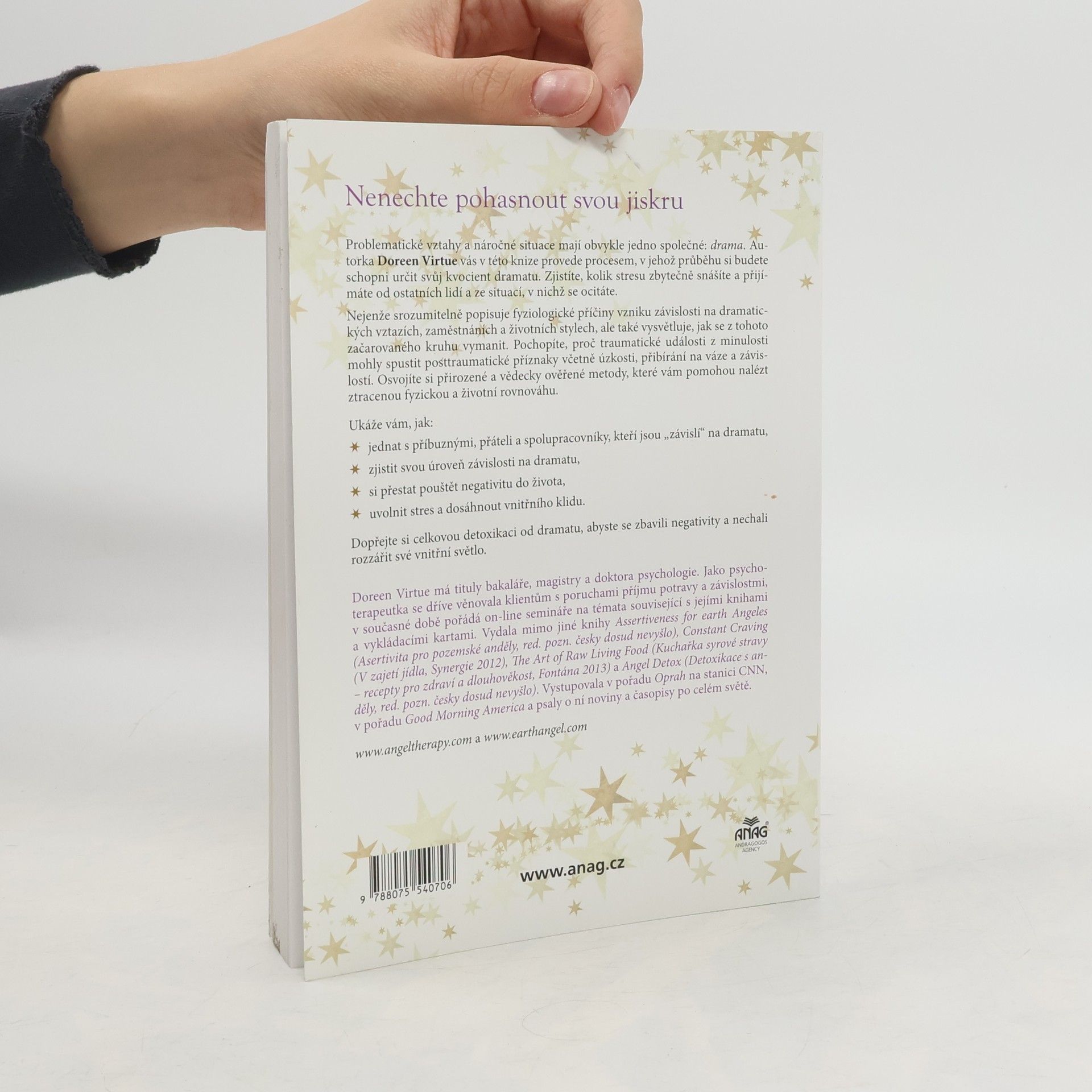 Komplikované vztahy a náročné životní situace s sebou vždy přinášejí napětí. Pozor na závislost na stresu a napětí Autorka vás v této knize naučí určit kvocient vašeho napětí, zjistíte, kolik stresu jste zbytečně snášeli a čerpali od jiných lidí a z různých situací. Doreen Virtue objasňuje filozofické důvody, proč byste se mohli stát závislými na napětí ve vztazích, práci a životě, a radí, jak se z tohoto cyklu vymanit. Vraťte svému životu rovnováhu Porozumíte tomu, jak mohou traumatické události z minulosti spustit posttraumatické symptomy, včetně úzkosti, přibývání na váze a závislosti. Naučíte se přírodní a vědecky podložené metody pro obnovení duševní pohody a rovnováhy pro vaše tělo a život. Doreen vám ukáže, jak: • jednat s příbuznými, přáteli a spolupracovníky, kteří jsou otroky napětí, • posoudit vlastní úroveň závislosti na napětí, • nevpustit negativitu do vašeho života, • zmírnit úzkost a nastolit tak vnitřní klid. Přistupte k celkové očistě pro odstranění napětí a negativity a nechte zazářit vaše světlo.