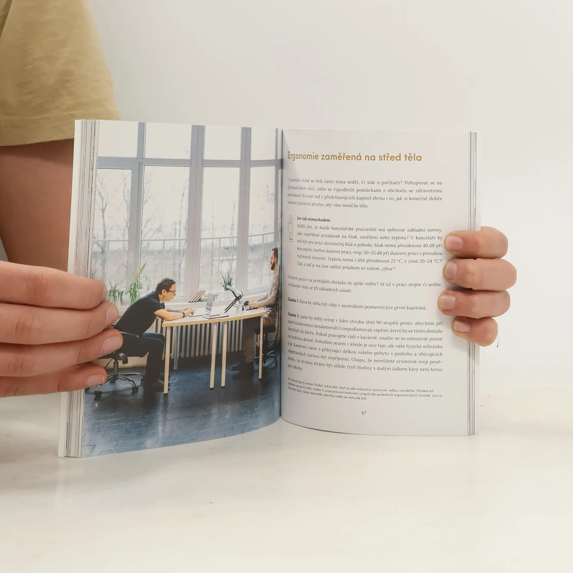 Kniha je určená všem lidem, kteří mají sedavé zaměstnání a z toho plynoucí bolesti těla, nebo třeba problémy s pracovní produktivitou či stresem a napětím. Díky této publikaci se naučíte uvolnit se přímo v práci a zařadit zdravý pohyb do každodenního života. V knize naleznete více jak 70 rad a cviků v pěti ucelených kapitolách zaměřených na jednotlivé části těla od hlavy až k patě. Budete mít možnost zjistit, že protáhnout se zdravě v práci není vůbec žádná věda a cítit se dobře ve vlastním těle je vlastně dost příjemné. Budete mít taktéž šanci nahlédnout do zajímavých a inspirativních českých kanceláří, kde se autorské fotografie pořizovaly.