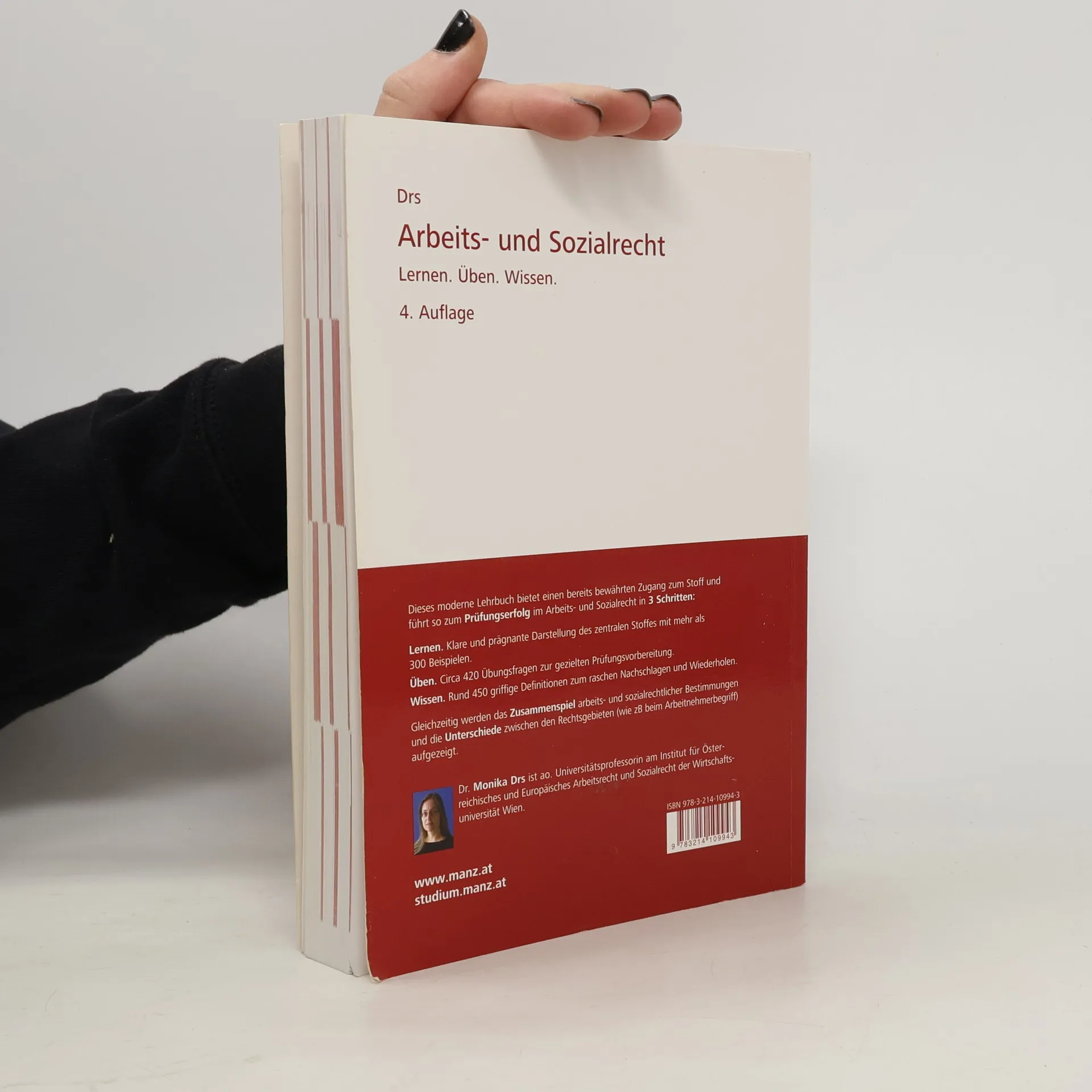 Die 7. Auflage wurde auf aktuellen Stand gebracht und beinhaltet alle gesetzlichen Neuerungen seit der Vorauflage: neues HinweisgeberInnenschutzgesetz, schrittweise Anhebung des Frauenregelpensionsalters. Gleichzeitig werden das Zusammenspiel arbeits- und sozialrechtlicher Bestimmungen und die Unterschiede zwischen den Rechtsgebieten aufgezeigt. Mit dem Lernkonzept Lernen.Üben. Wissen in 3 Schritten zum Prüfungserfolg im Arbeits- und Sozialrecht: Lernen . Klare und prägnante Darstellung des zentralen Stoffes mit rund 300 Beispielen. Üben . Circa 430 Übungsfragen zur gezielten Prüfungsvorbereitung. Wissen . Rund 450 griffige Definitionen zum raschen Nachschlagen und Wiederholen. Zu diesem Lern- und Arbeitsbuch gibt es die Quiz-App REDdyforLAW , mit der das erlernte Wissen anhand von mehr als 500 Multiple-Choice-Fragen samt sofortiger Auswertung getestet werden kann. Darüber hinaus stehen Updates über die veränderlichen Werte und die wichtigsten Novellen des Arbeits- und Sozialrechts zur Verfügung, siehe manz. at/studium/lernen-mit-manz/aktualisierungen.