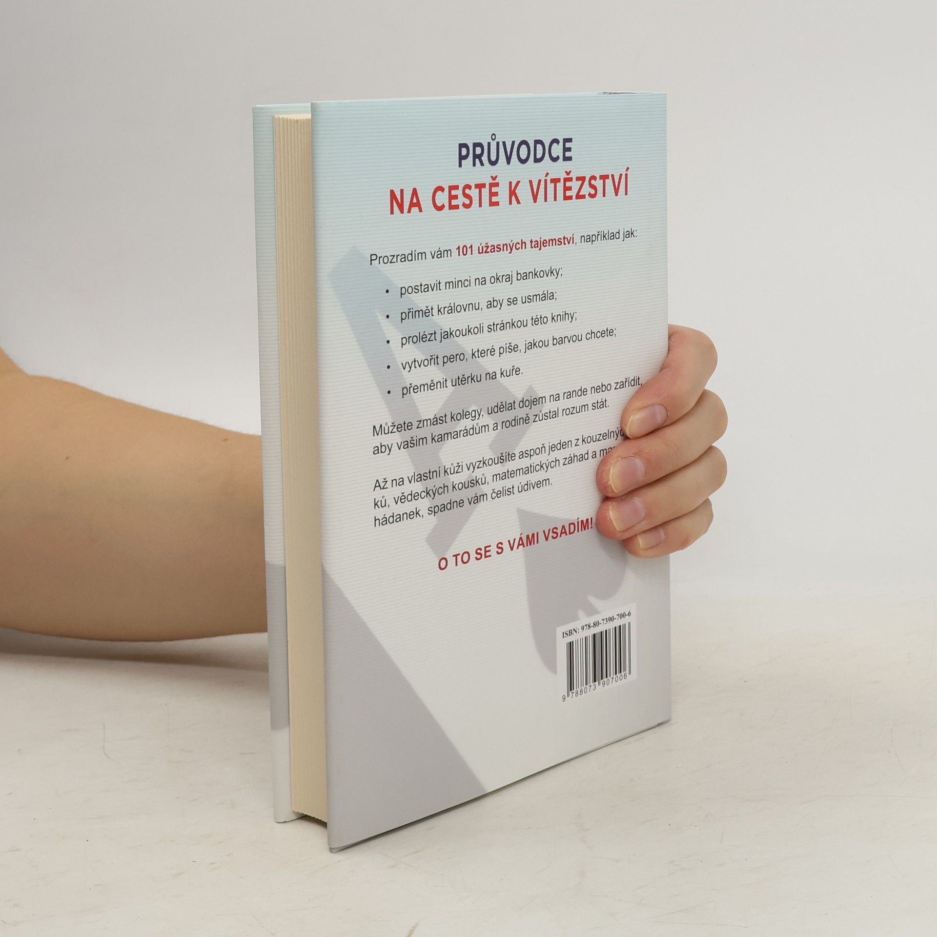 Každý má rád vítěze a tato kniha je o tom, jak vyhrát. Představte si, že někoho překvapíte zdánlivě nemožnou sázkou, a bezpečně víte, že vždy vyhrajete. Pokud se s kamarády nebo známými rádi sázíte, je tato kniha právě pro vás. Co takhle uzavřít sázku: „Vsadím se s tebou, že tohle pero bude psát jakoukoli barvou, kterou si řekneš.“ V knize najdete 101 zdánlivě neuskutečnitelných věcí, které jsou ovšem velmi snadné.