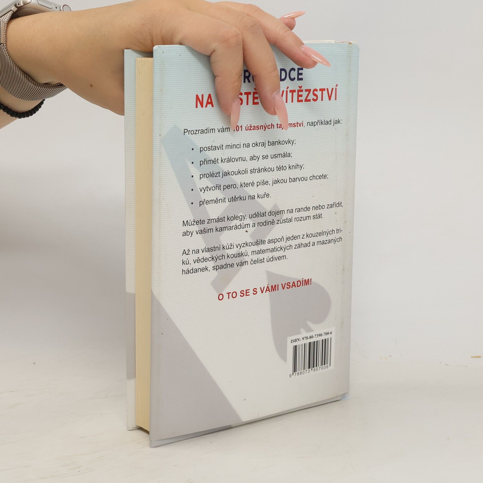 Každý má rád vítěze a tato kniha je o tom, jak vyhrát. Představte si, že někoho překvapíte zdánlivě nemožnou sázkou, a bezpečně víte, že vždy vyhrajete. Pokud se s kamarády nebo známými rádi sázíte, je tato kniha právě pro vás. Co takhle uzavřít sázku: „Vsadím se s tebou, že tohle pero bude psát jakoukoli barvou, kterou si řekneš.“ V knize najdete 101 zdánlivě neuskutečnitelných věcí, které jsou ovšem velmi snadné.