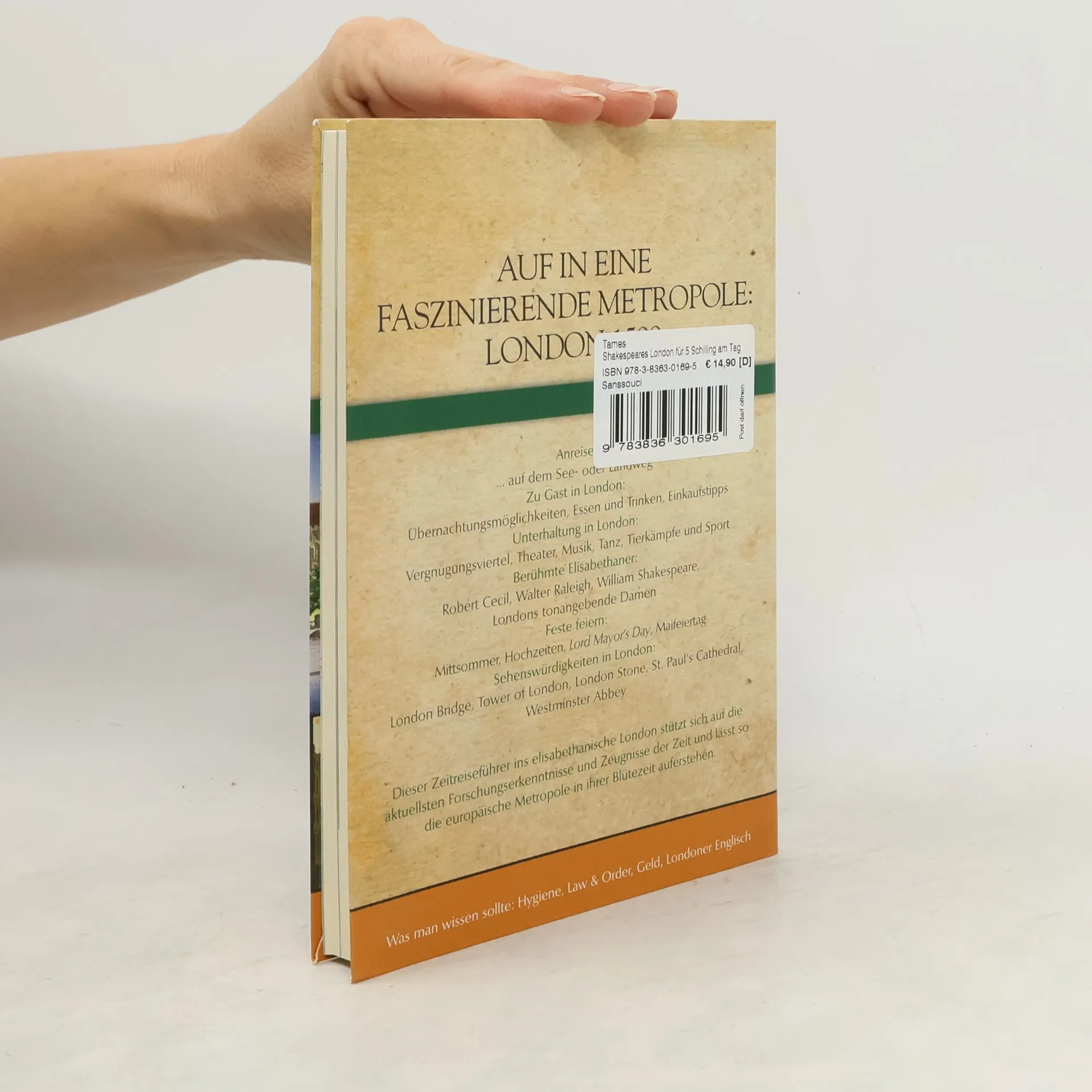 London um 1600: Richard Tames zeigt uns in diesem Zeitreiseführer, wie in der Hauptstadt von Großbritannien schon während der Renaissance das Leben pulsierte. Wir werden informiert über Anreise, Sehenswürdigkeiten und Küche - angereichert um Hintergründe aus Kultur und Geschichte. Neben Shakespeare lernen wir weitere berühmte Menschen der Zeit kennen, Ausflugtipps verhelfen zur Erholung vom Trubel der Themse-Stadt, ein Stadtplan erleichtert die Orientierung und ein farbiger Bildteil ergänzt die Informationen des Buches. Die mühelose Verständigung garantiert ein Sprachführer für Londoner Mundart. Eine faszinierende Zeitreise!
