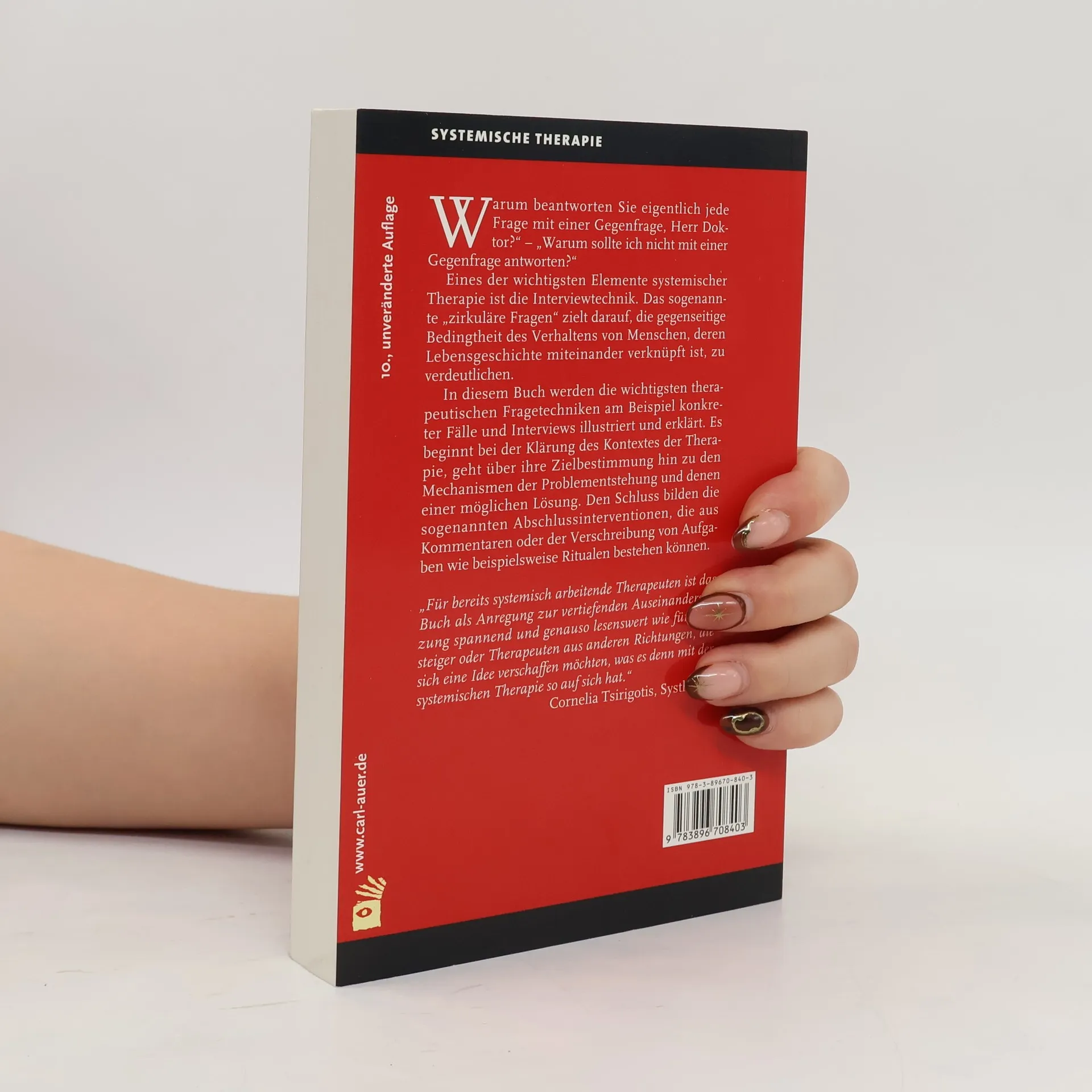 „Warum beantworten Sie eigentlich jede Frage mit einer Gegenfrage, Herr Doktor?“ – „Warum sollte ich nicht mit einer Gegenfrage antworten?“ Eines der wichtigsten Elemente systemischer Therapie ist die Interviewtechnik. Das sogenannte „zirkuläre Fragen“ zielt darauf, die gegenseitige Bedingtheit des Verhaltens von Menschen, deren Lebensgeschichte miteinander verknüpft ist, zu verdeutlichen. In diesem Buch werden die wichtigsten therapeutischen Fragetechniken am Beispiel konkreter Fälle und Interviews illustriert und erklärt. Es beginnt bei der Klärung des Kontextes der Therapie, geht über ihre Zielbestimmung hin zu den Mechanismen der Problementstehung und denen einer möglichen Lösung. Den Schluss bilden die sogenannten Abschlussinterventionen, die aus Kommentaren oder der Verschreibung von Aufgaben wie beispielsweise Ritualen bestehen können.