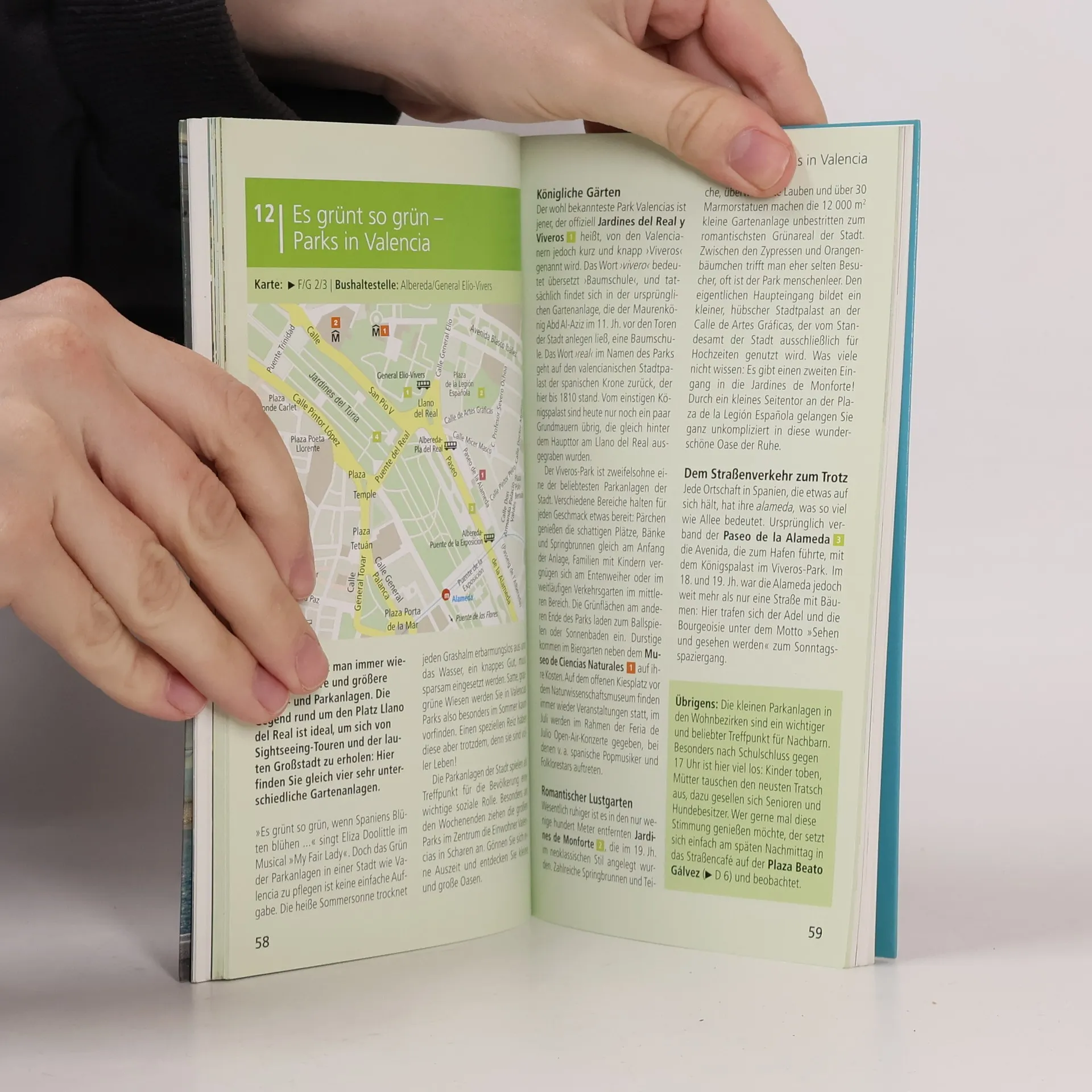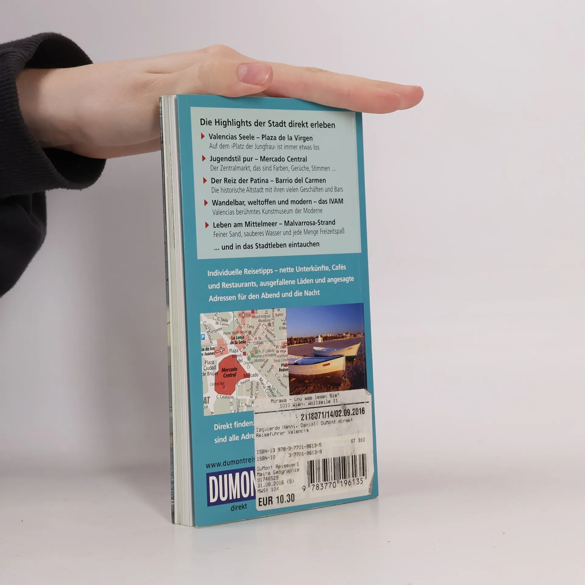 Die kleine Schwester Barcelonas: Von der mittelalterlichen Handelsmacht zeugen die gotische Kathedrale und die gotische Seidenbörse, prachtvolle Jugendstilbauten schmücken die Stadt, und supermoderne Museumskomplexe verbinden futuristische Architektur mit ambitionierten Ausstellungen. In 15 »Direkt-Kapiteln« führt Daniel Izquierdo Hänni den Besucher direkt zu den Highlights der Stadt und hilft, ihr Wesen zu entdecken, ihren Puls zu spüren: Miguelete und Kathedrale; Plaza de la Virgen; Mercado Central; Lonja de la Seda; Kneipentour durch die Altstadt; Kunstmuseum IVAM; Casa-Museo Benlliure; Museum Palacio del Marqués de Dos Aguas; vom Rathaus zum Bahnhof; nobles Viertel L ́Eixample; Parks in Valencia; Mulikulti-Viertel Ruzafa; Ciudad de las Artes y las Ciencias; Malvarrosa-Strand. Rund 200 handverlesene Adressen für jede Laune, jeden Geschmack, jeden Geldbeutel, von der Übernachtung über Essen und Trinken sowie Einkaufen bis Ausgehen lassen den Citytrip zum Erlebnis werden. Jede Adresse ist mit einem Schlagwort versehen – das erleichtert die schnelle Orientierung. Im großen separaten Cityplan sind alle im Buch empfohlenen Adressen namentlich eingetragen, außerdem zeigt er einen Metroplan, Extrakarten zu El Cabanal und zur Altstadt, sowie eine Umgebungskarte. Die Übersichtskarte zeigt alle Highlights, Detailpläne erlauben die präzise Orientierung in den 15 »Direkt-Kapiteln«.