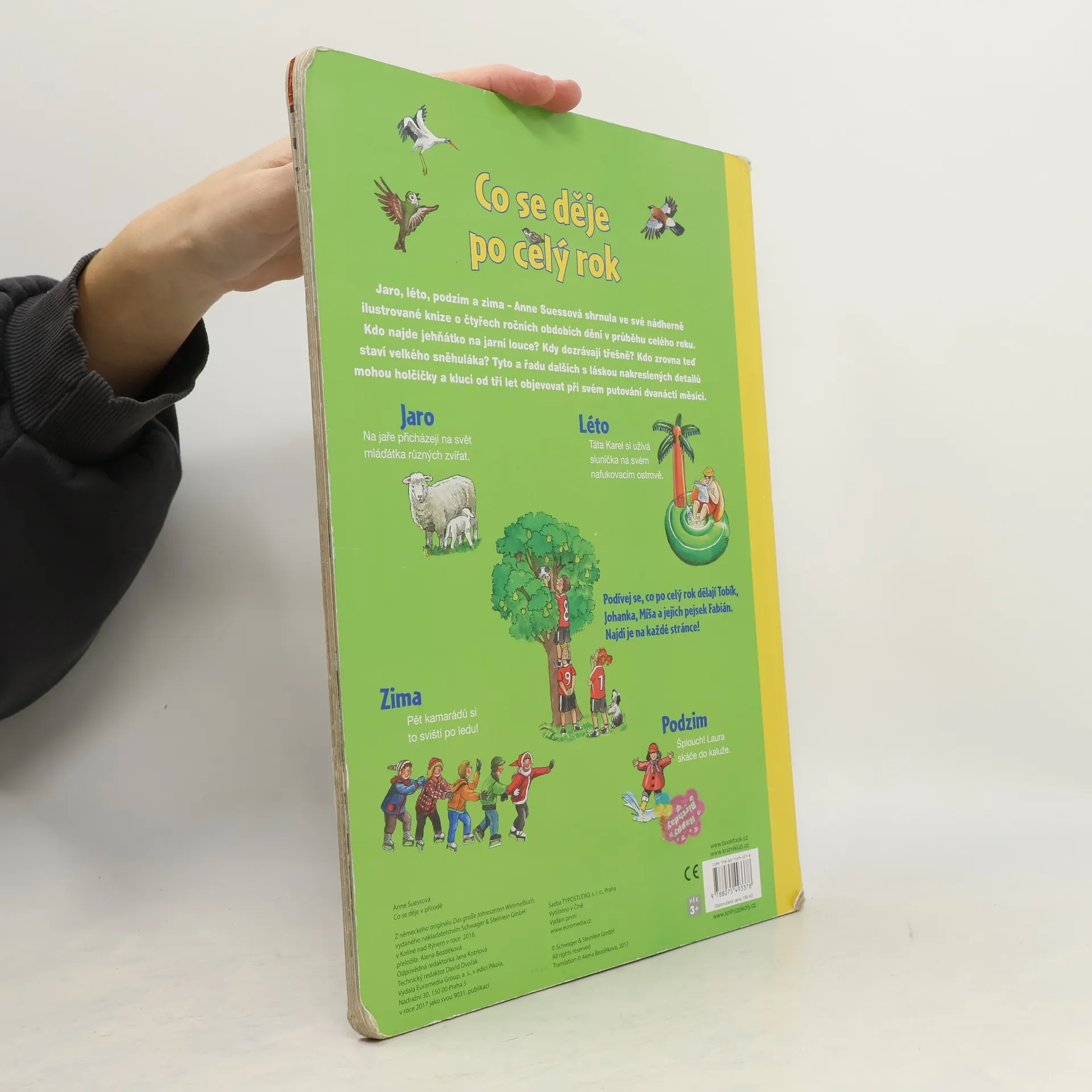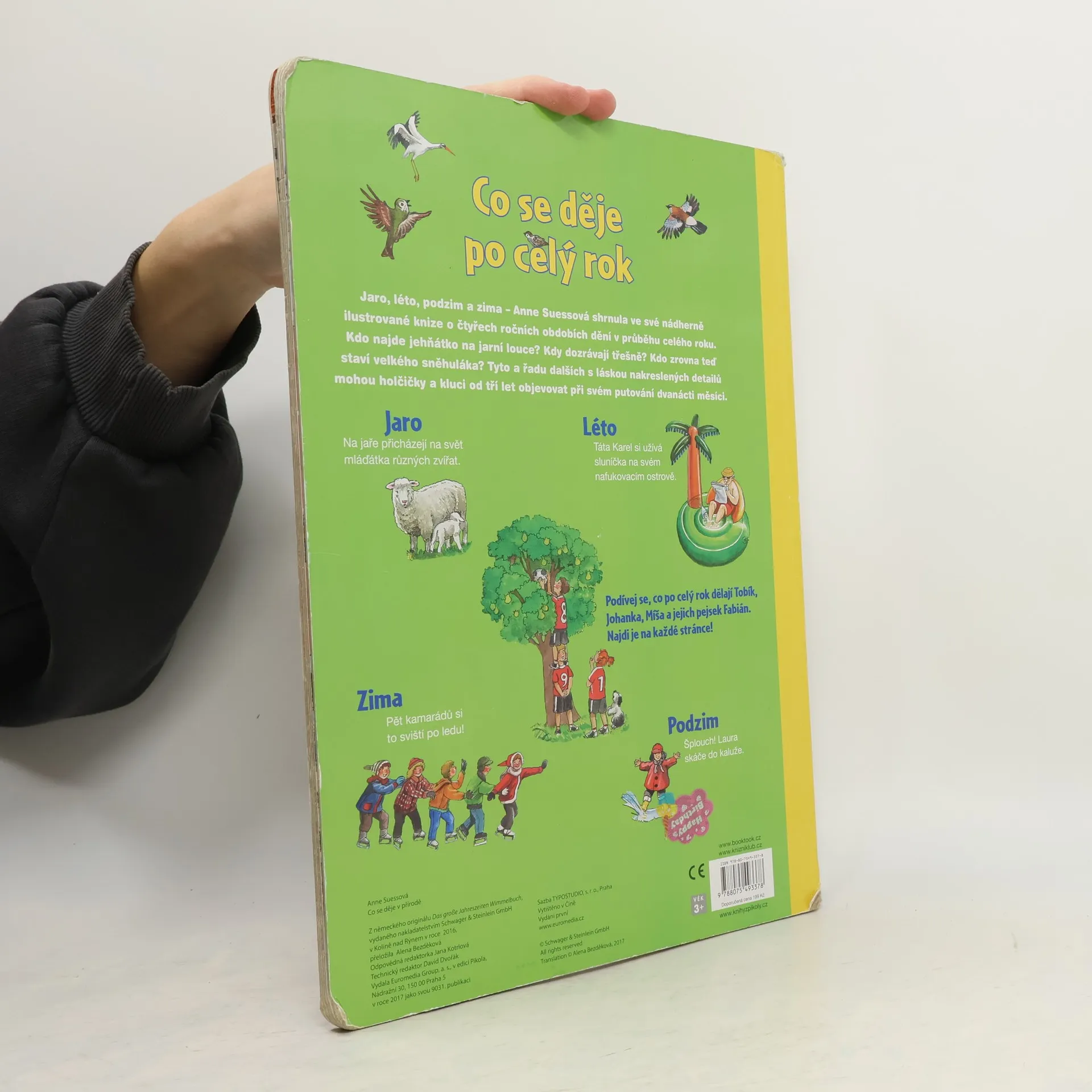 Jaro, léto, podzim a zima – Anne Suessová shrnula ve své nádherně ilustrované knize o čtyřech ročních obdobích dění v průběhu celého roku. Kdo najde jehňátko na jarní louce? Kdy dozrávají třešně? Kdo zrovna teď staví velkého sněhuláka? Tyto a řadu dalších s láskou nakreslených detailů mohou holčičky a kluci od tří let objevovat při svém putování dvanácti měsíci