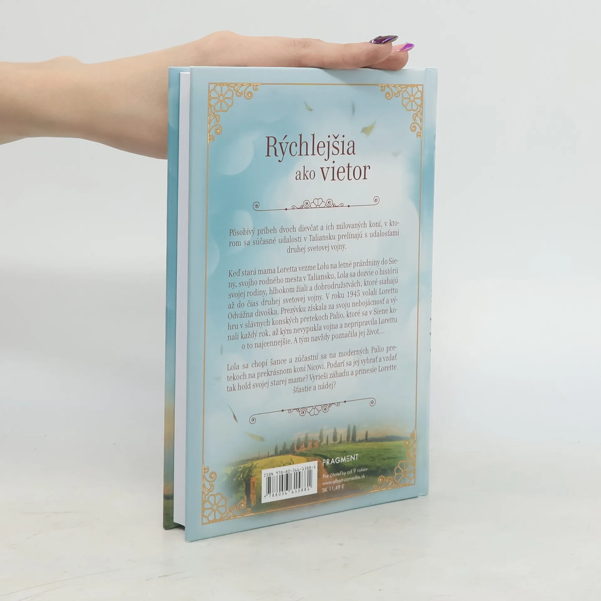 Pôsobivý príbeh dvoch dievčat a ich milovaných koní, v ktorom sa súčasné udalosti v Taliansku prelínajú s udalosťami druhej svetovej vojny. Keď stará mama Loretta vezme Lolu na letné prázdniny do Sieny, svojho rodného mesta v Taliansku, Lola sa dozvie o histórii svojej rodiny, hlbokom žiali a dobrodružstvách, ktoré siahajú až do čias 2. svetovej vojny. V roku 1945 volali Lorettu Odvážna divoška. Prezývku získala za výhru v slávnych konských pretekoch Palio, ktoré sa v Siene konali každý rok, až kým nevypukla vojna a tým navždy poznačila jej život. Lola sa chopí šance a zúčastní sa na moderných pretekoch Palio, aby vzdala hold starej mame.