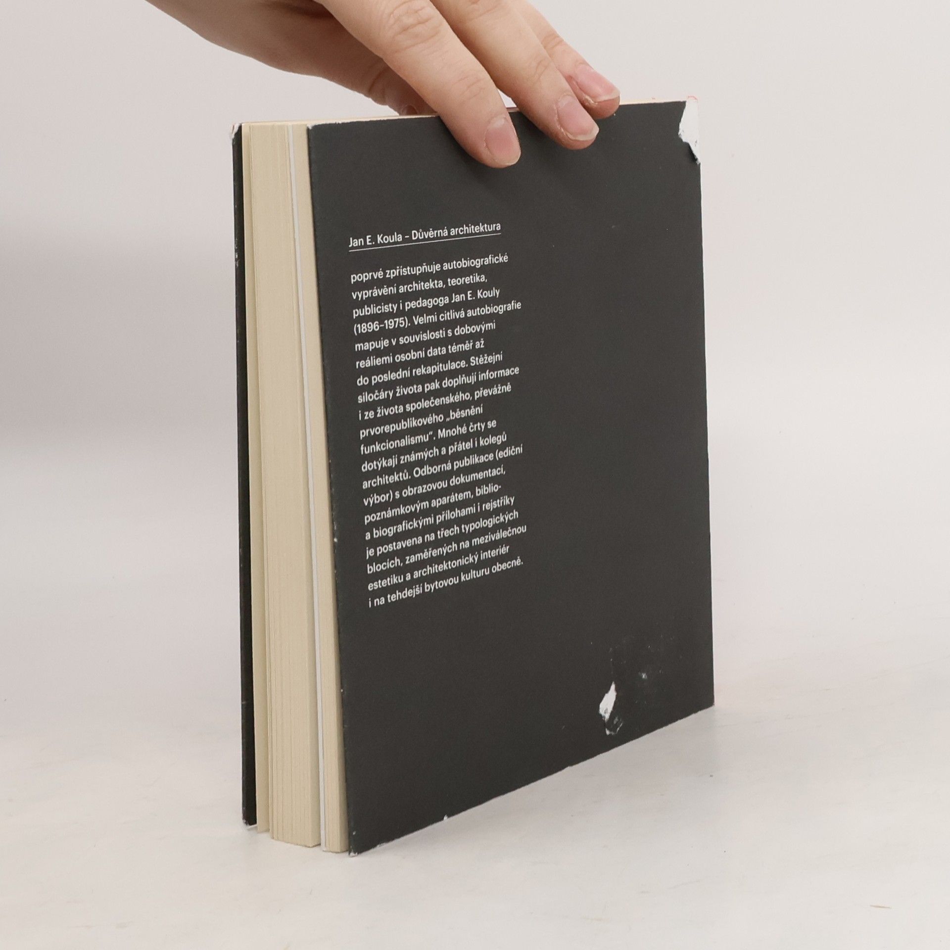 Projekt edičního výboru rukopisných textů autobiografické, vlastní literární i přednáškové povahy architekta Jana E. Kouly (1896–1975). Chronologický písemný projev samotného autora, jeho životopisného vyprávění je velmi citlivou osobní zpovědí sledující a mapující v souvislosti s dobovými reáliemi události od architektova dětství téměř po poslední chvíle života. Ke stěžejní kapitole bude patřit vzpomínka na jeho profesní vrchol jako architekta, publicisty i pedagoga. Ostatní kapitoly pak doplňují informace ze života společenského, převážně prvorepublikového „běsnění funkcionalismu“. Mnohé črty se dotýkají přátel i kolegů Jana E. Kouly. K nejpůsobivějším patří kapitola o Koulově dětství a studijních létech, kde je podána faktografická a místopisná črta o Bubenči, o stavebním ruchu bubenečské vilové čtvrti na počátku 20. století. Zároveň je zajímavá a přínosná srovnávací paralela ve vyprávění autora o soudobé architektuře a o prostředí mezi architekty, či text motivovaný Koulovým celoživotním zájmem o lidové stavitelství.