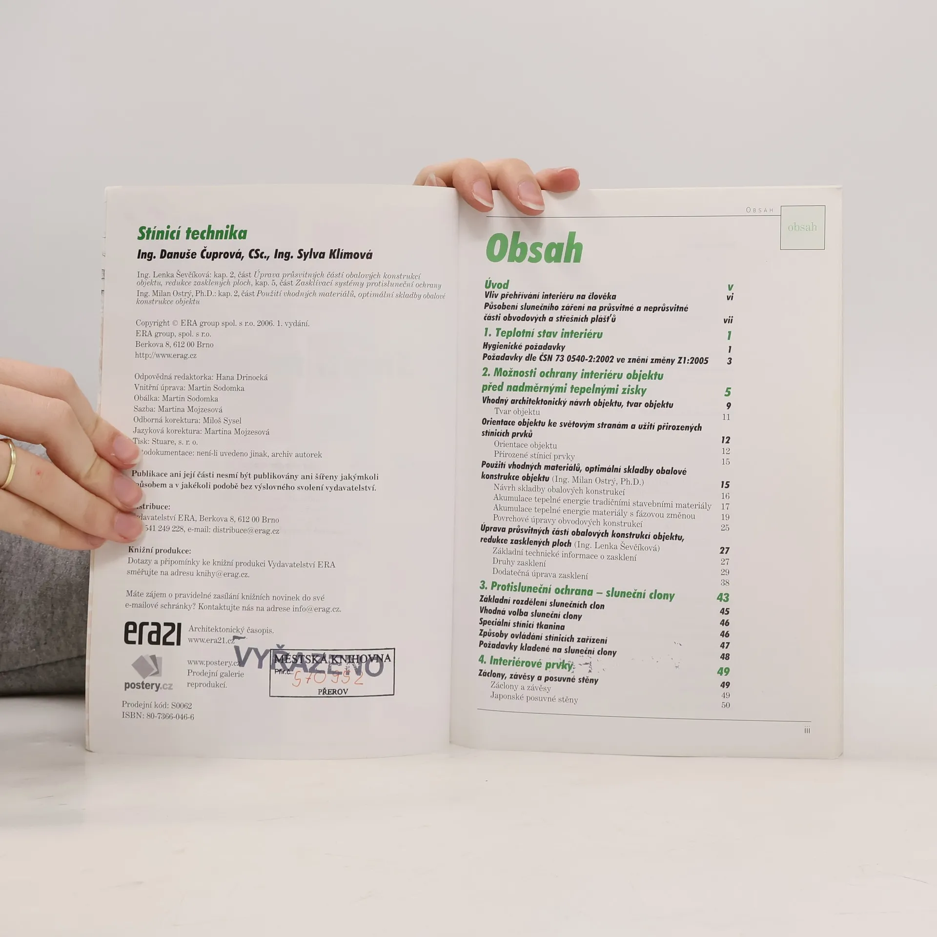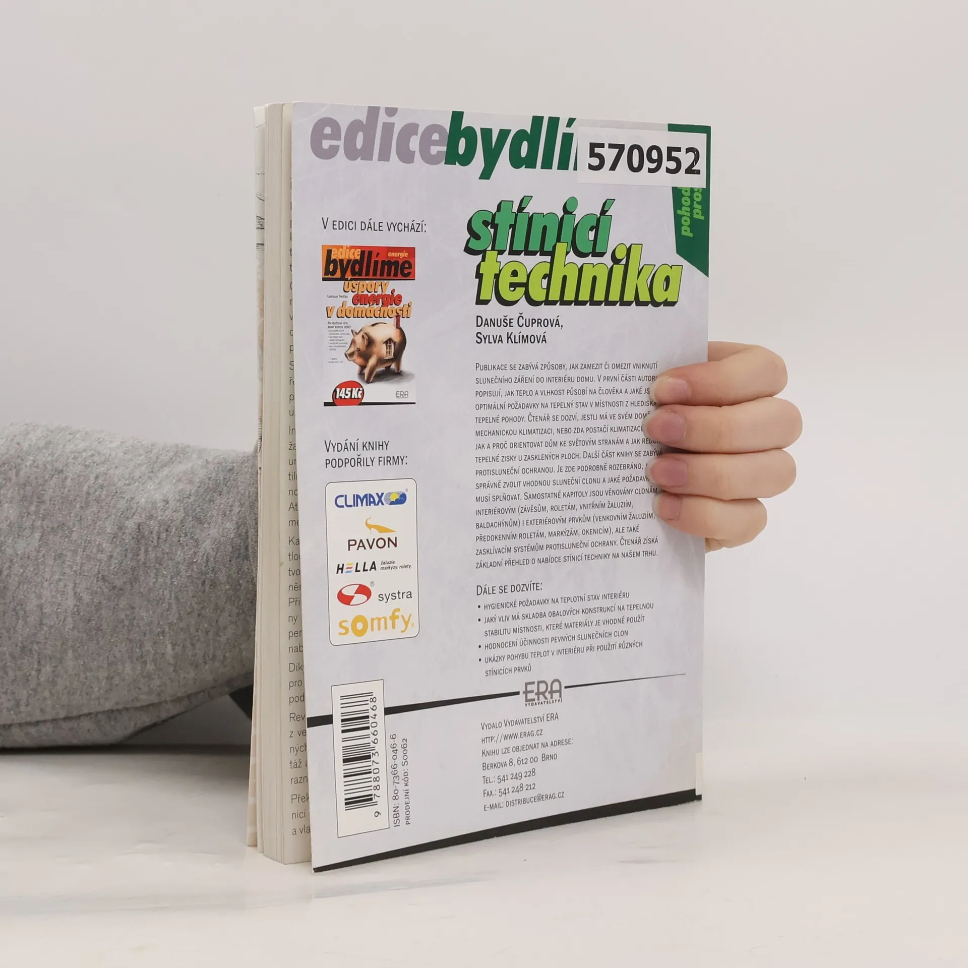 Obytné budovy mají být navrhovány tak, aby byly prosluněny. Pokud je však slunečního záření příliš, je nutné použít vhodné zastínění. Příručka nás seznámí se všemi možnostmi stínění - od běžných bytových závěsů a rolet přes žaluzie, markýzy, baldachýny a posuvné stěny, až po použití speciálních skel a reflexních folií. Kniha obsahuje řadu nákresů a tabulek a je doplněna barevnou přílohou. 1. vydání.